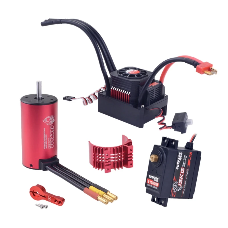 3670 2650kv Бессенсорный бесщеточный двигатель и ESC 120A & RC крышка радиатора для RC автомобиляЧрезвычайно мощная бесщеточная система для любого грузовика 1/8 1/10, автомобиля или багги.KV значение: 2650KVВатты: 1600Максимальное напряжение: менее 18,5 вМакс Ампер: 86AРотор полюсов: 4Ввода/вывода: 4.2AСопротивление: 0,0069Максимальная скорость вращения: 50000Вал: 5 ммДлина удлинительного вала: 17 ммРазъем: 4,0 мм золотоПрименимые модели: 1 / 10 плоский спортивный автомобиль 2 - 4sМодель: 120AКонт. Ток: 120AТок срабатывания: 600AПодходит для автомобилей: 1 / 10 или 1/8 автомобиляСопротивление: 0.00035ohmБатарея: 3-6 ячеек Lipo 9-18 ячеек NiMHBEC выход: 6,1 В/3 АКонт. Ток/импульсный ток: 120A/600AСопротивление: 0.00035ohmБатарея: 3-6S Lipo/9-18Cells NiMHBEC выход: 6,1 В/3 А (режим переключения)Размеры/вес: 160x100x6 2 мм/135 гS1500M 15 кг Цифровой Сервопривод:Бренд: SURPASS HobbyМодель: S1500MКрутящий момент стойла: 15 кгс. См при 6,0 В; 23 кгс. См при 7,4 В;Скорость без нагрузки: 0,20 с/60 градусов при 6,0 В; 0,18 с/60 градусов при 7,4 В;Вес: 58 г (2,11 унций);Внешние размеры: 40,4x20,0x38,6 мм (1,59x0,79x1,51 дюйма);Рабочее напряжение: 6,0 ~ 7.4VDC;Рабочая частота: 1520 мкс/333 Гц;Тип двигателя: двигатель постоянного тока;Тип шестерни: металлическая шестерня;Тип подшипника: 2BB;Цвет: черный + красныйМатериал: металлРазмер:Длина удлинительного вала: 17 мм,ESC: 160x100x62 мм,Сервопривод: 40,4x20,0x38,6 ммКомплектация:Двигатель-1 шт.,1 х Электронный регулятор (ESC),1 х Servo,1 х металлический поворотный рычагТолько вышеуказанное содержание упаковки, другие продукты не включены.Примечание: световая съемка и различные дисплеи могут привести к тому, что цвет товара на картинке немного отличается от реального. Допустимая погрешность измерения составляет +/- 1-3 см.