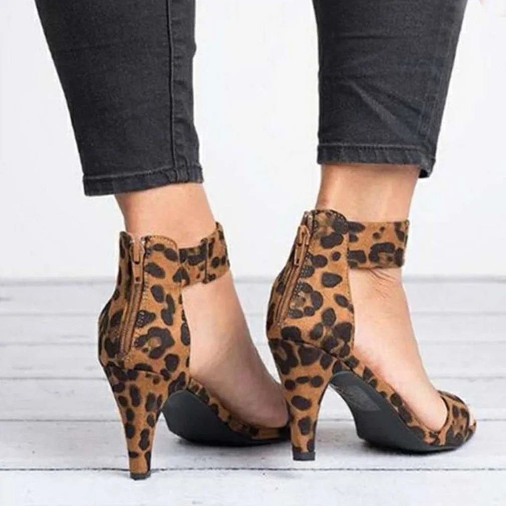 Весенние женские туфли-лодочки; Босоножки на тонком высоком каблуке с открытым носком на молнии; Замшевые леопардовые туфли на платформе; Женские офисные сандалии; Sapato Feminino