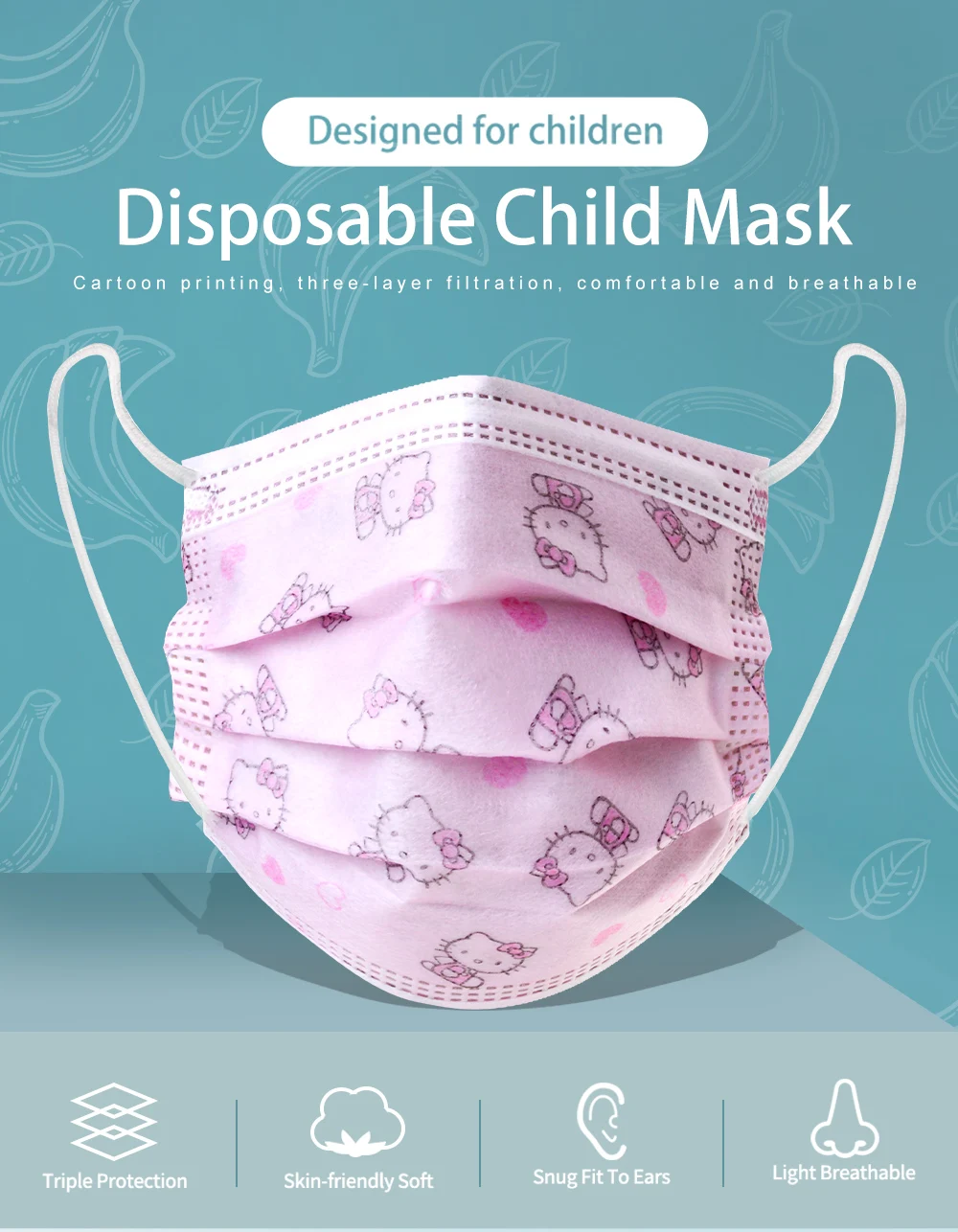 Одноразовые Детские маски 10-200 шт., Детские маски, розовые Мультя...