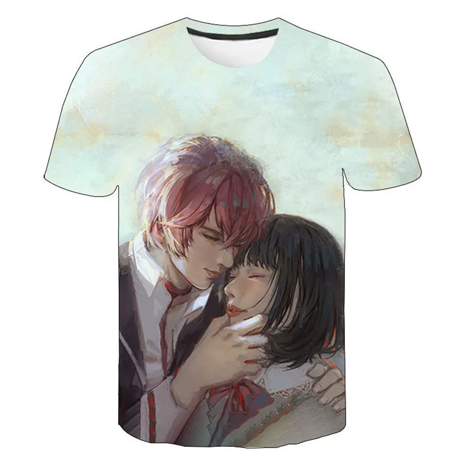 Футболки с 3D-принтом в стиле аниме, для влюбленных, для мужчин и женщин, с круглым вырезом, стиль Харадзюку, хип-хоп, модные повседневные футболки, топы