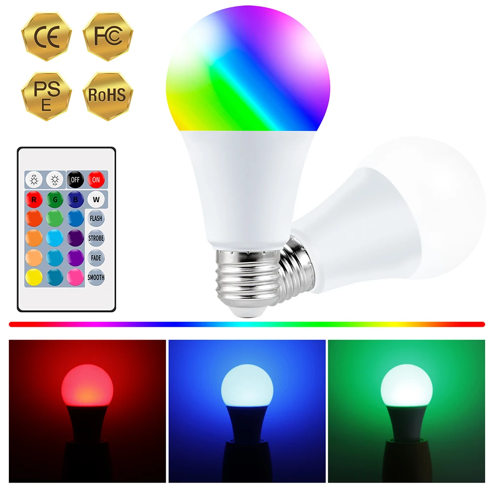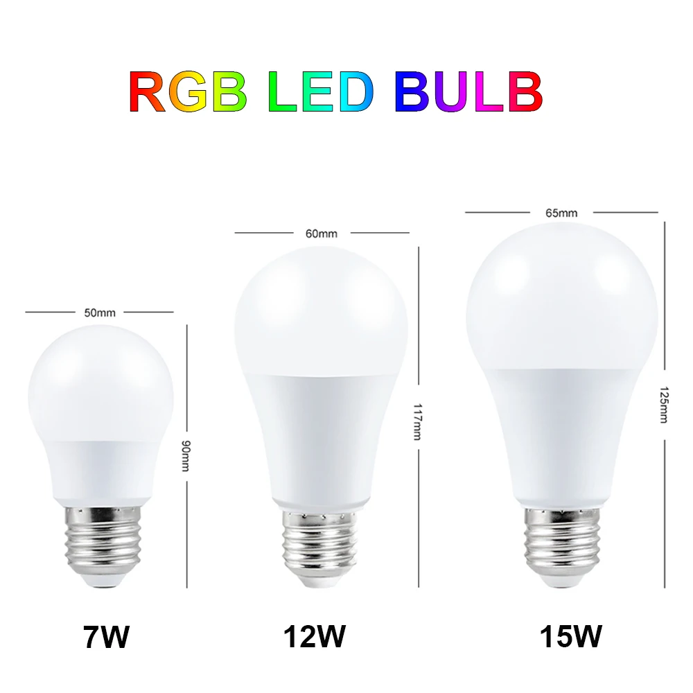 Умная светодиодная RGB лампа E27 с регулируемой яркостью, осветительная приглушаемая лампочка, цветная меняющаяся лампочка для украшения дома, белый цвет, RGBW, 7 Вт, 12 Вт, 15 Вт