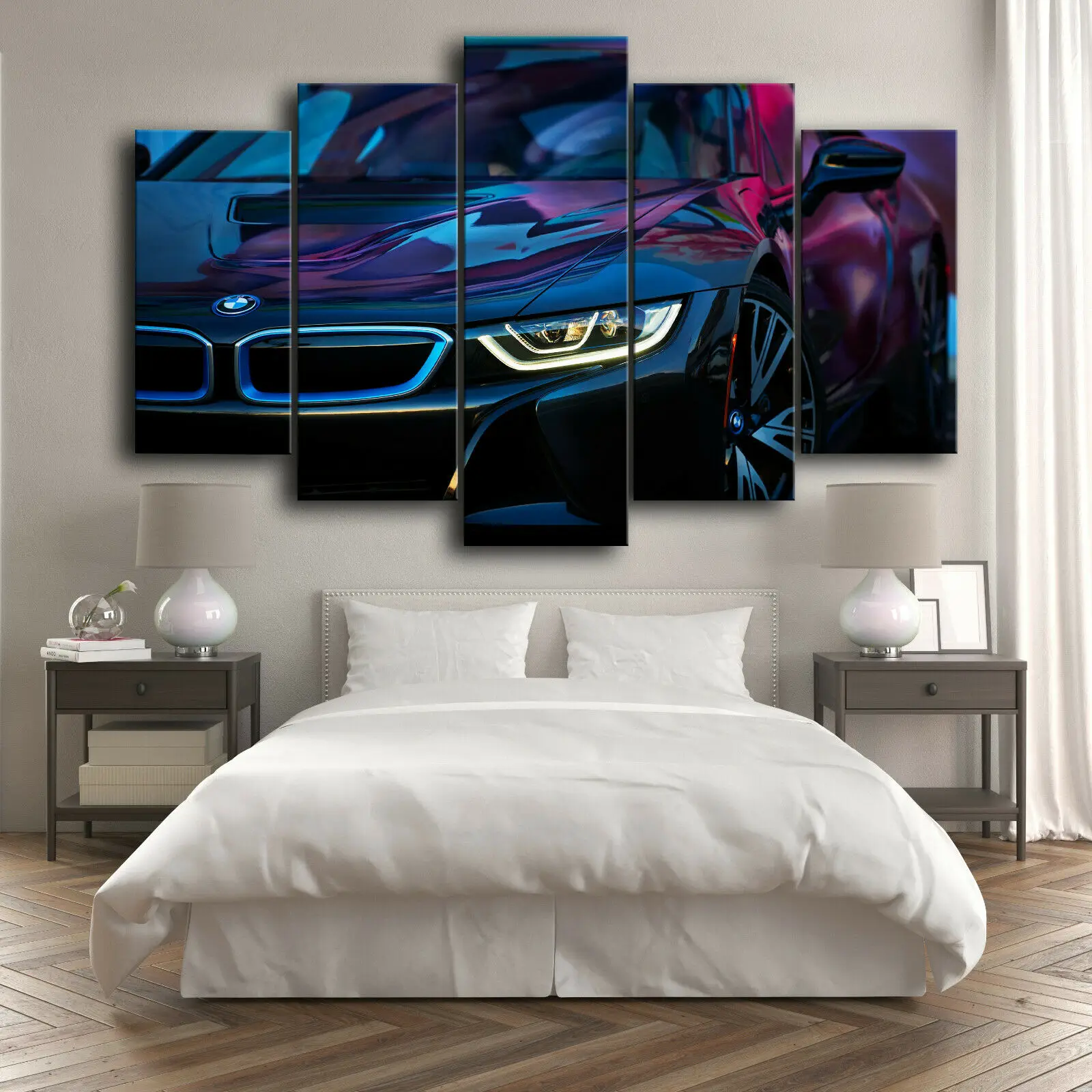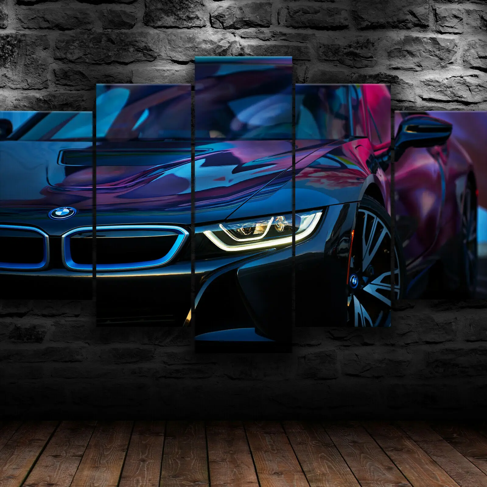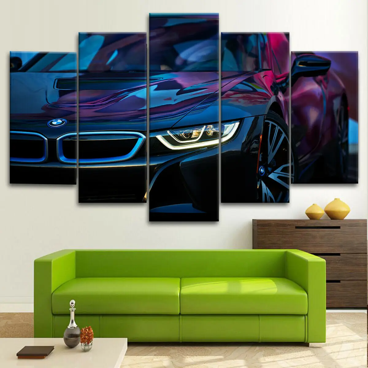 Картины из 5 панелей, печать HD, БМВ i8, 5 шт., холст, настенный плакат с изображением автомобиля, домашний декор, картины для гостиной без рамы