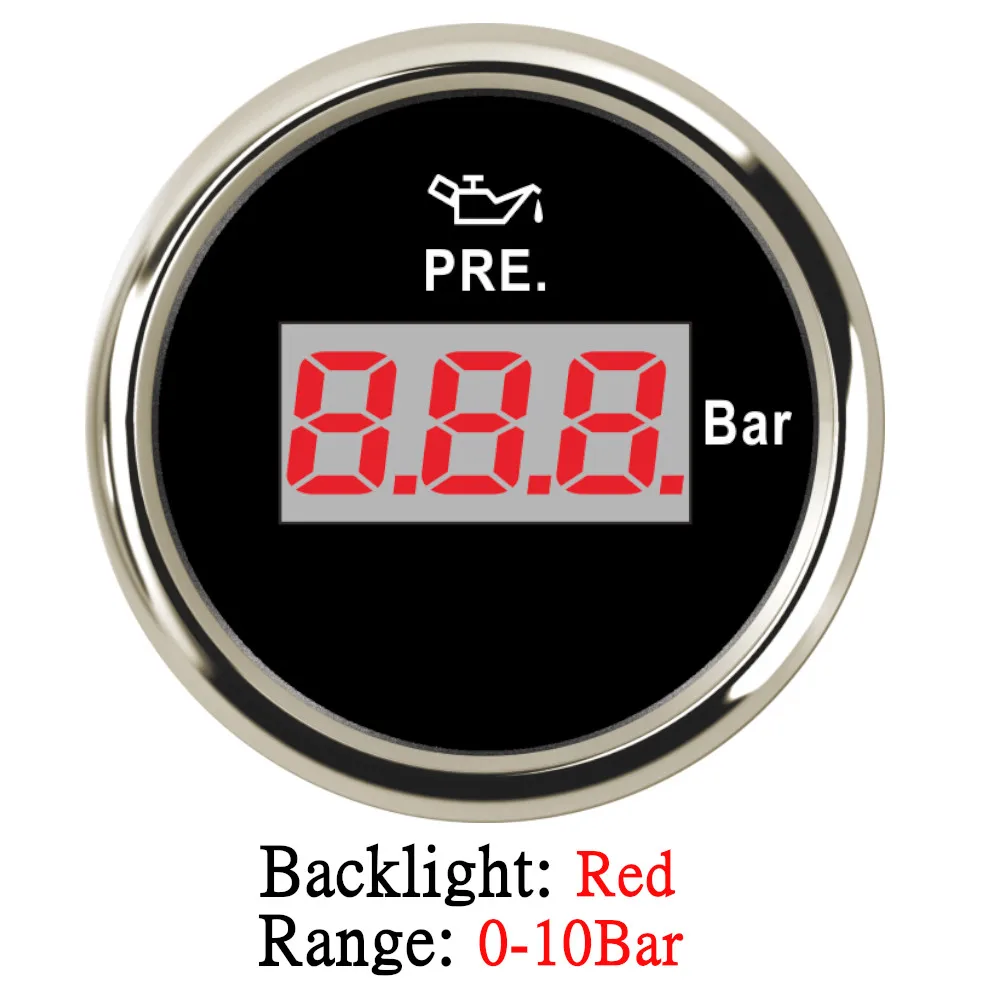 2"(52mm) Oil Pressure Gauges 0-75PSI Marine Boat Yacht 0-5Bar/0-10Bar Auto Mechanical Oil Pressure Sensors M10x1 NPT1/8 Red Backlight