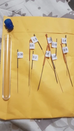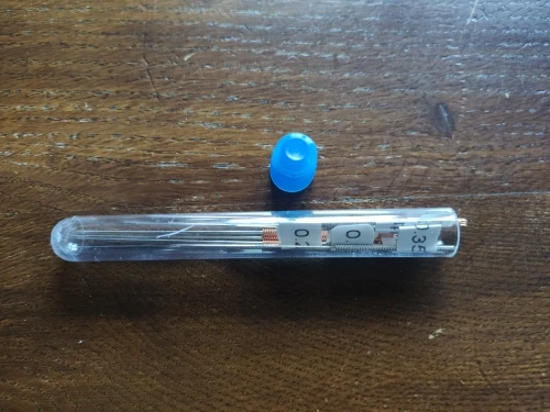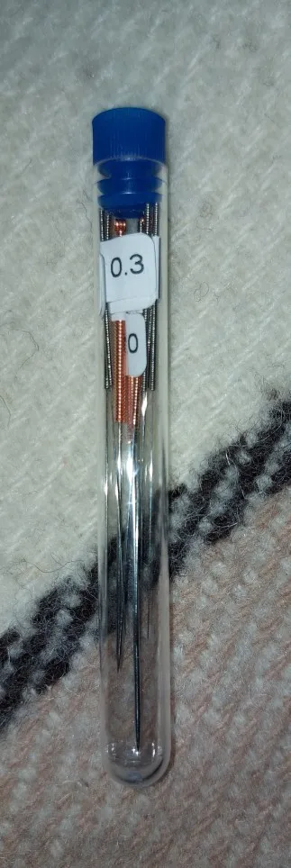 Я получил его хорошо упакованный, все иглы четко обозначены бумажным флагом. Я проверил диаметры игл с микрометром и все они находятся в пределах 0,01 мм от номинального.