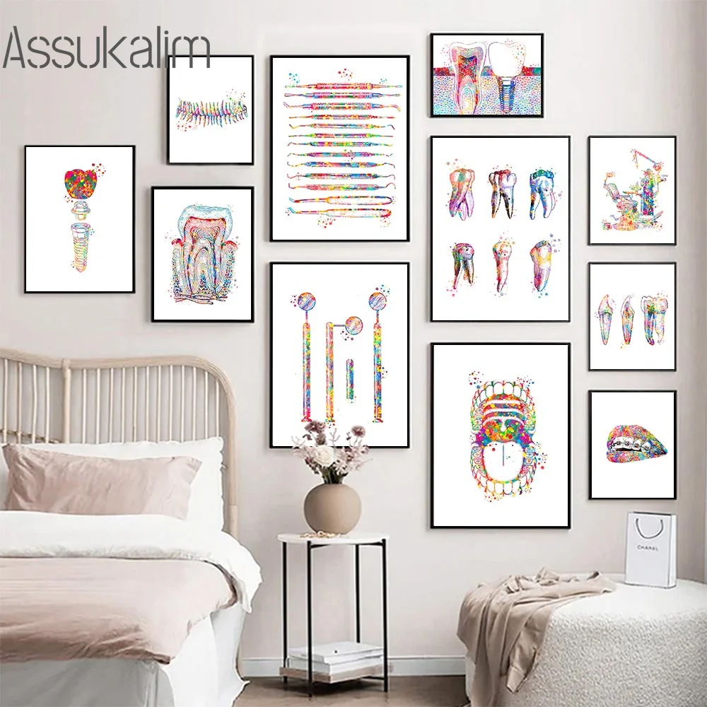 Абстрактная печать зубов настенная Картина на холсте стоматологический инструмент плакат десны художественные принты скандинавские плакаты Современное украшение стоматологической клиники