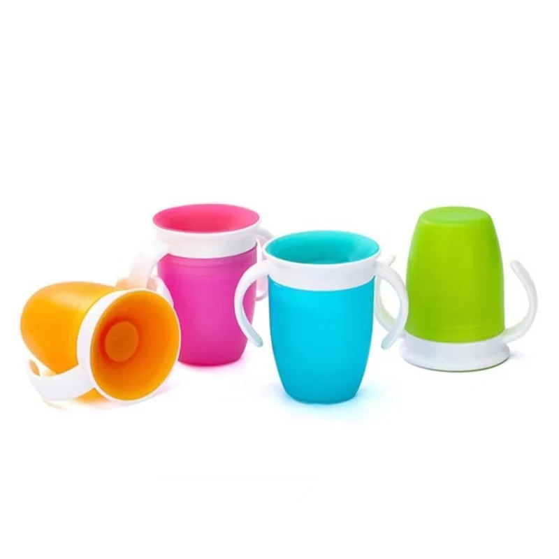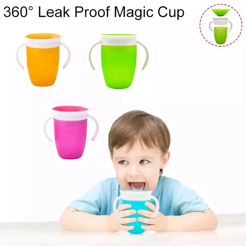 Поворот на 360 градусов, Детская развивающая Питьевая чашка с двойной ручкой и откидной крышкой, герметичная бутылка для воды для младенцев, без БФА