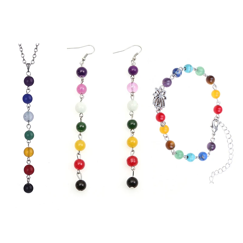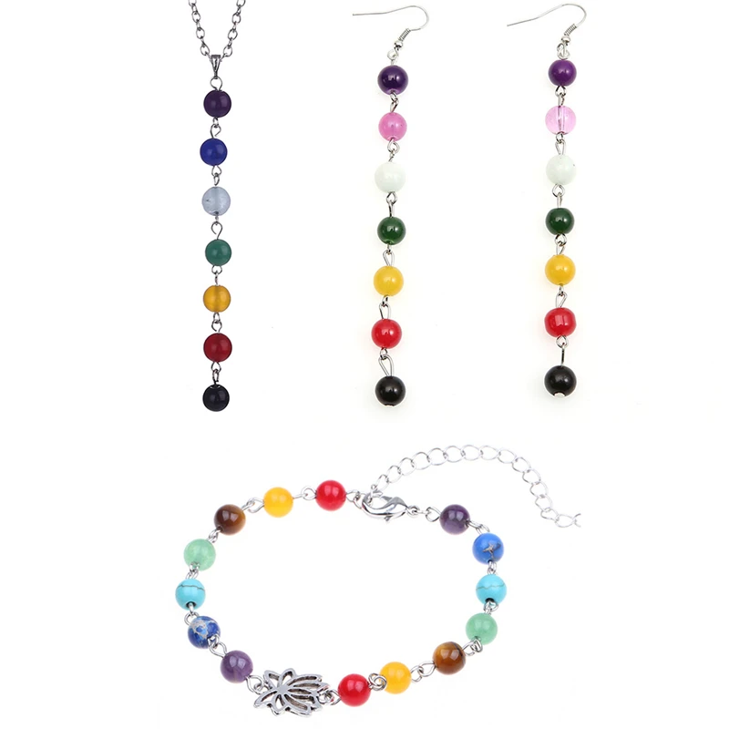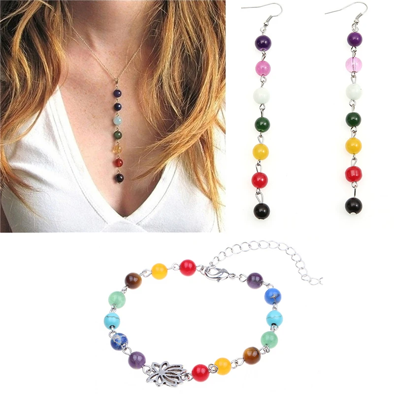 Драгоценный камень для чакры подвеска с бусинами из камней ожерелье серьги набор для женщин Йога Рейки Исцеление балансировка Макси чакра ножной браслет новый ювелирный набор