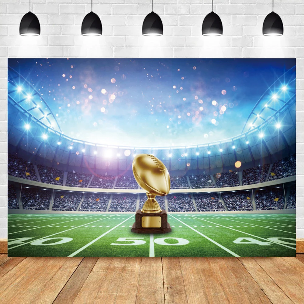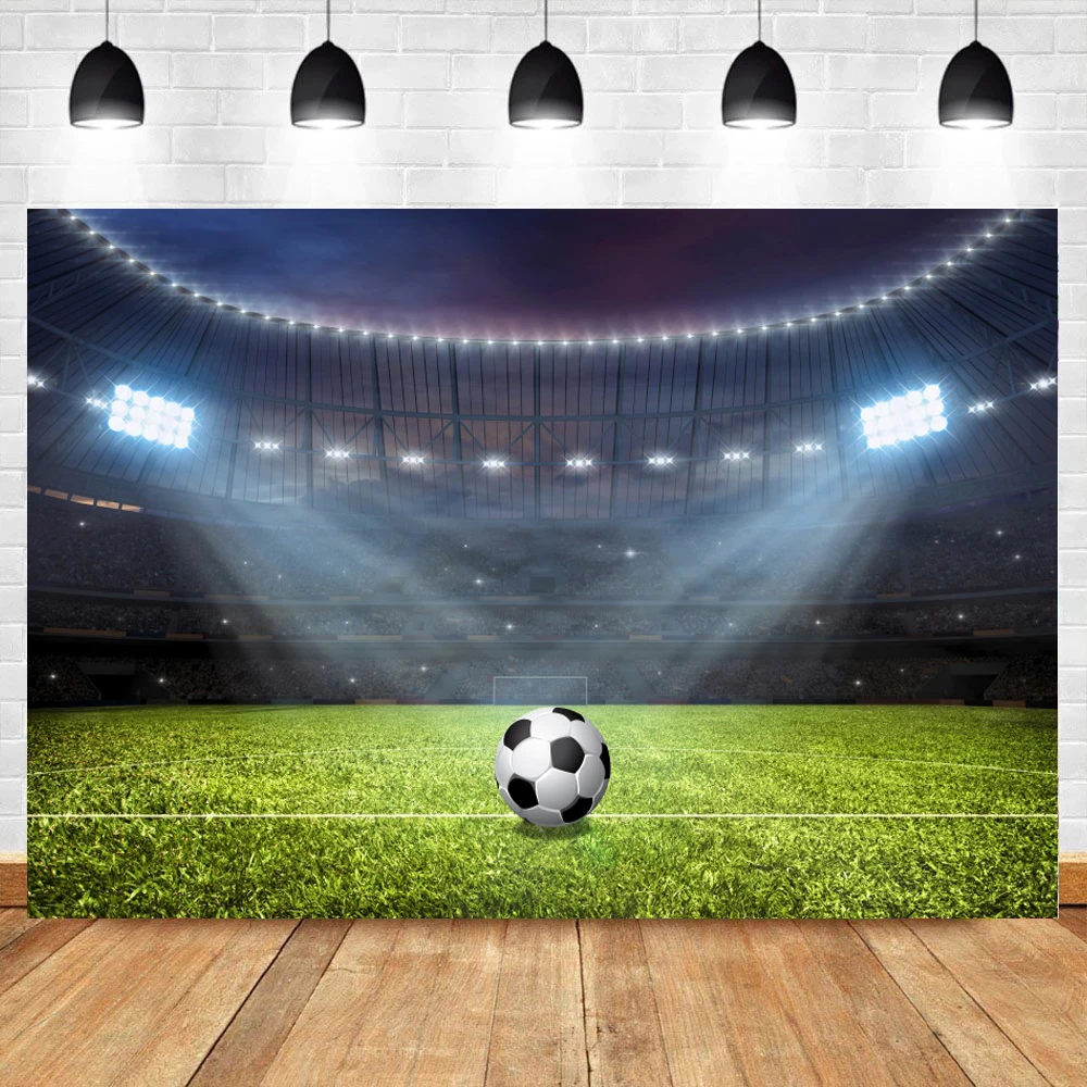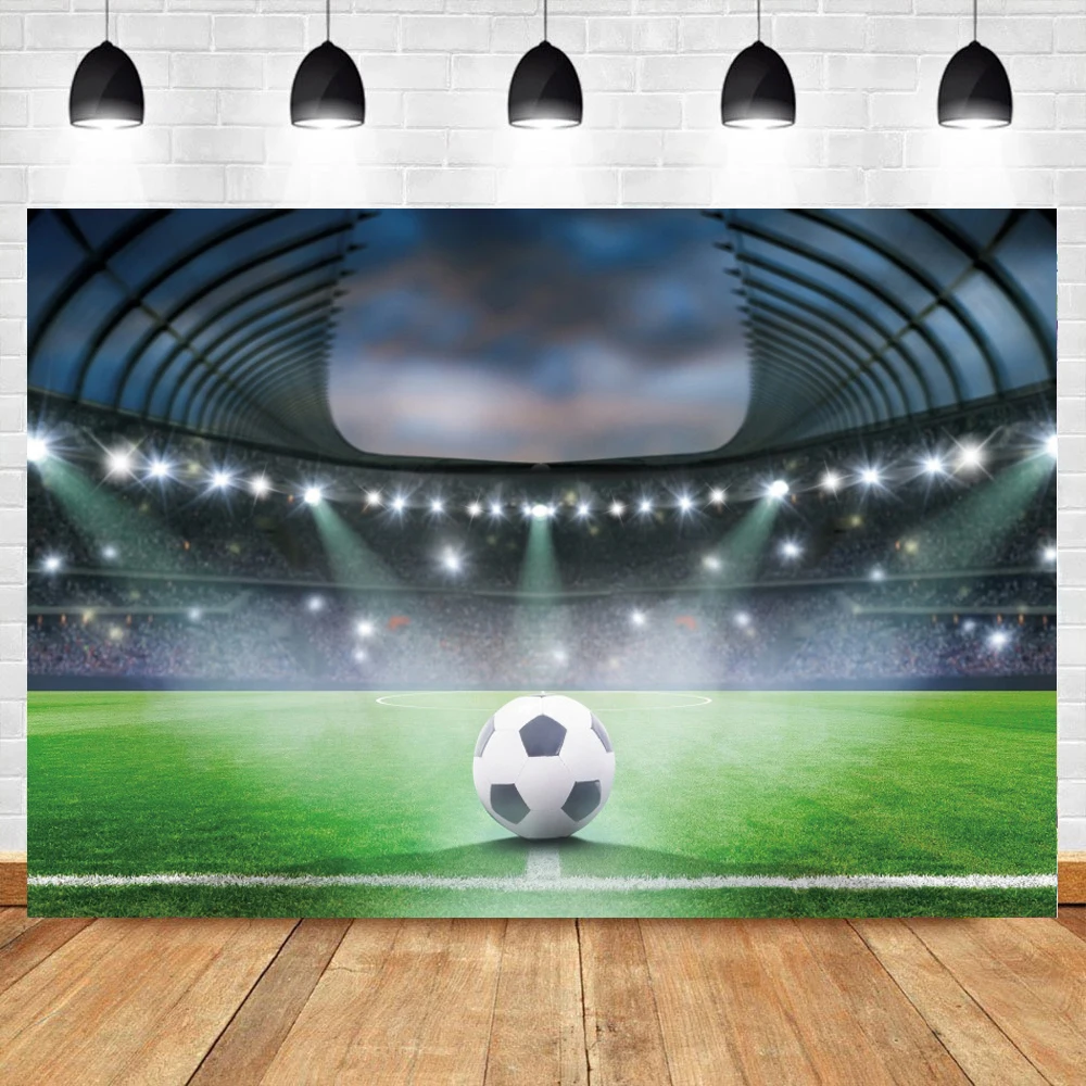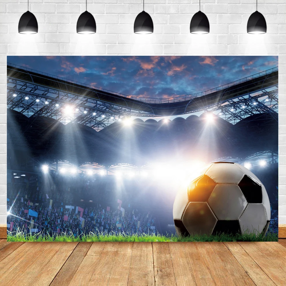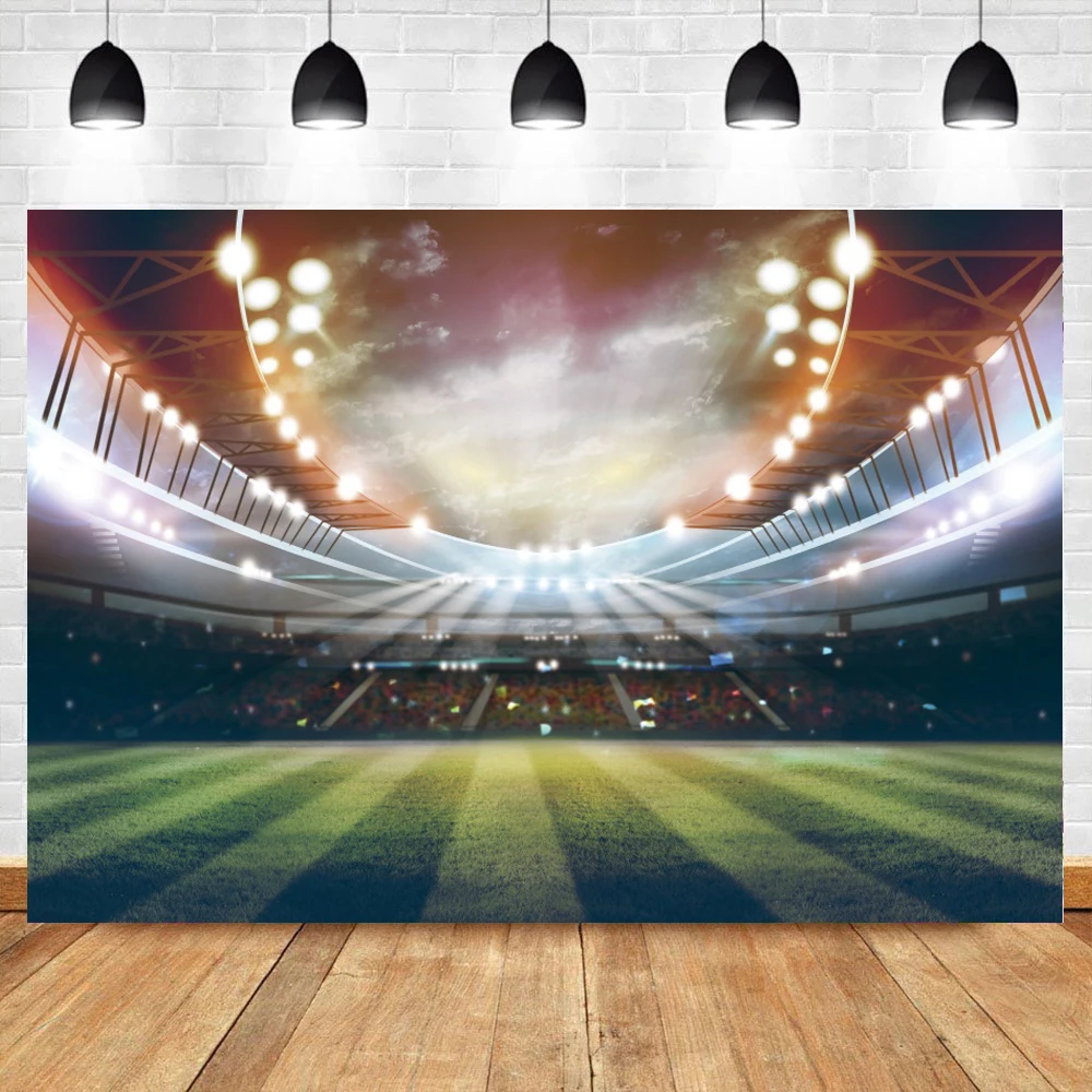 Laeacco футбол Блестящий прожектор стадион гол Чемпион Корабль день рождения Постер фото фон фотографический фон