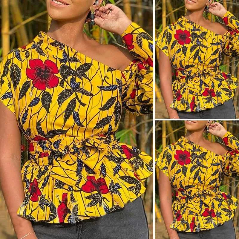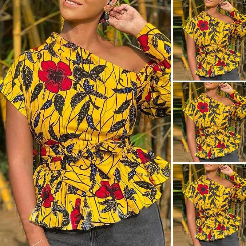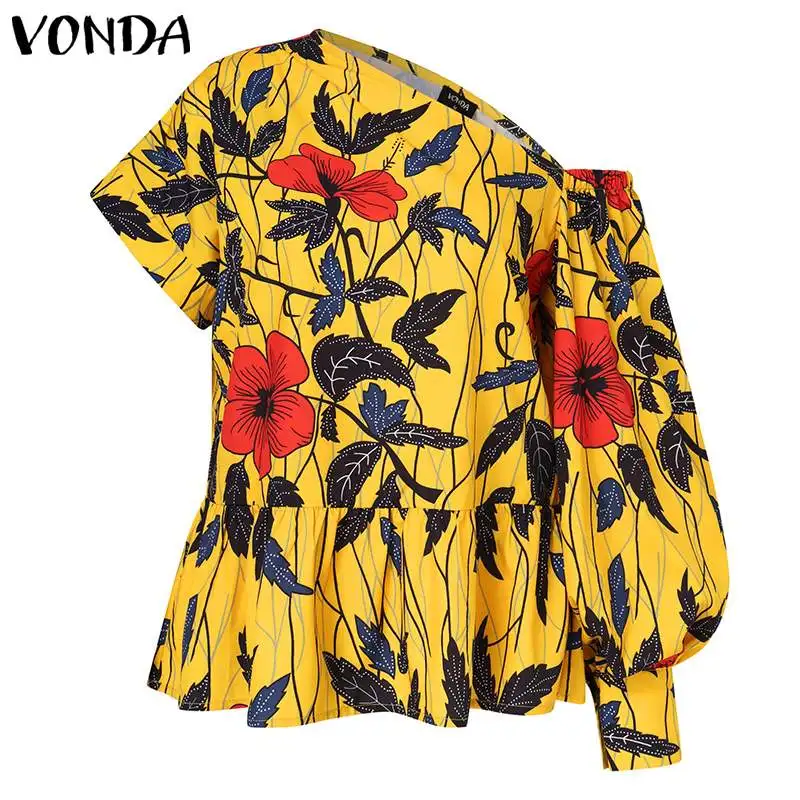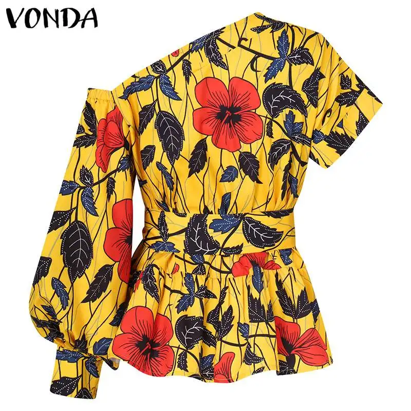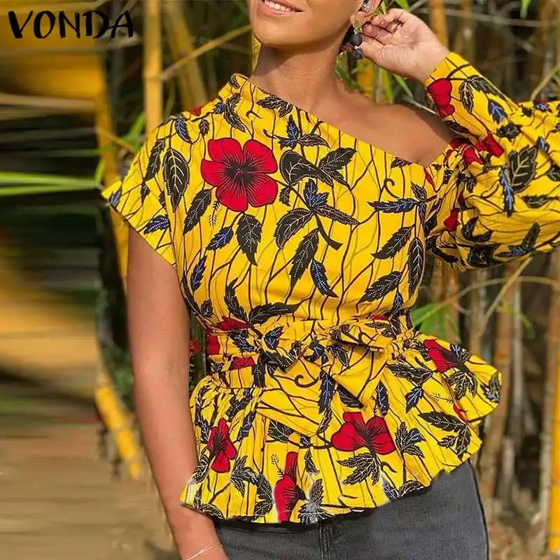 Блузка на одно плечо, женские сексуальные рубашки с принтом 2022 VONDA, женские блузки большого размера с поясом и цветочным принтом