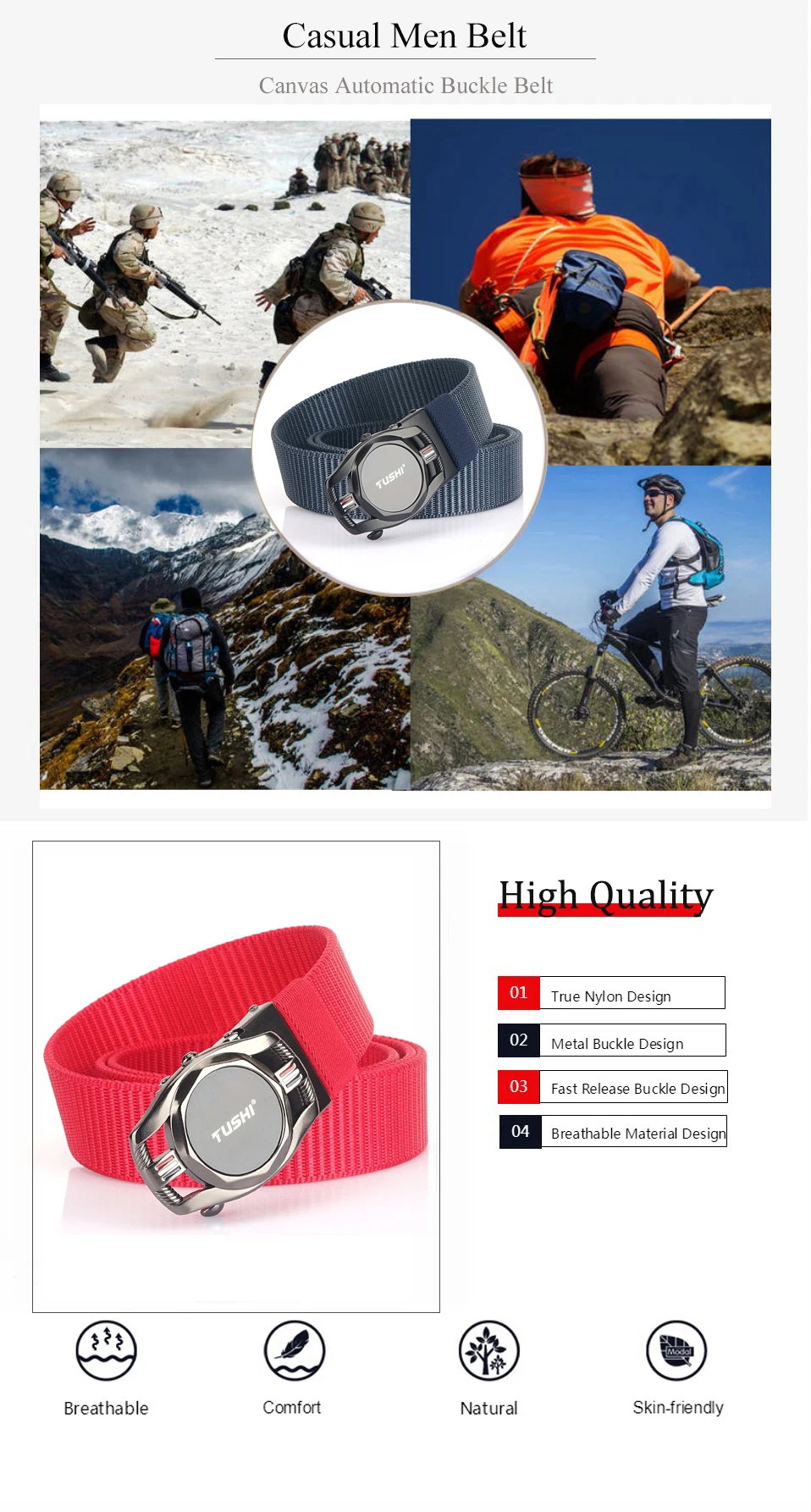 Ремень нейлоновый мужской с автоматической пряжкой, многофункционал...