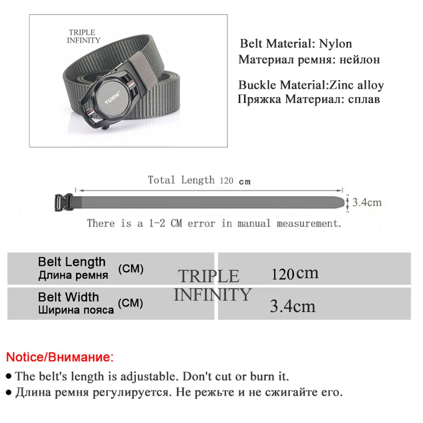 Нейлоновый ремень с тройной бесконечностью для мужчин, Регулируемый...