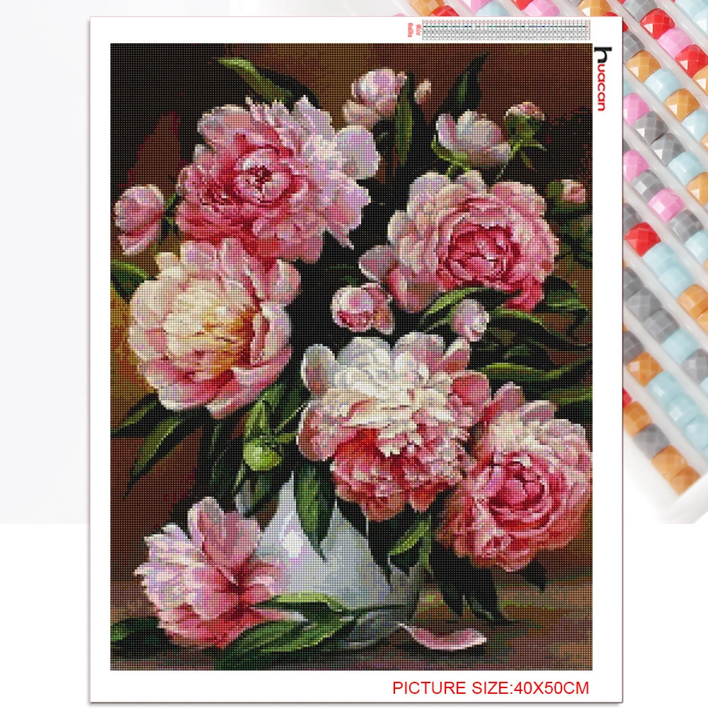 Алмазная 5D Вышивка Huacan сделай сам, картина с цветами пиона, мозаика, вышивка крестиком, полноразмерный домашний декор