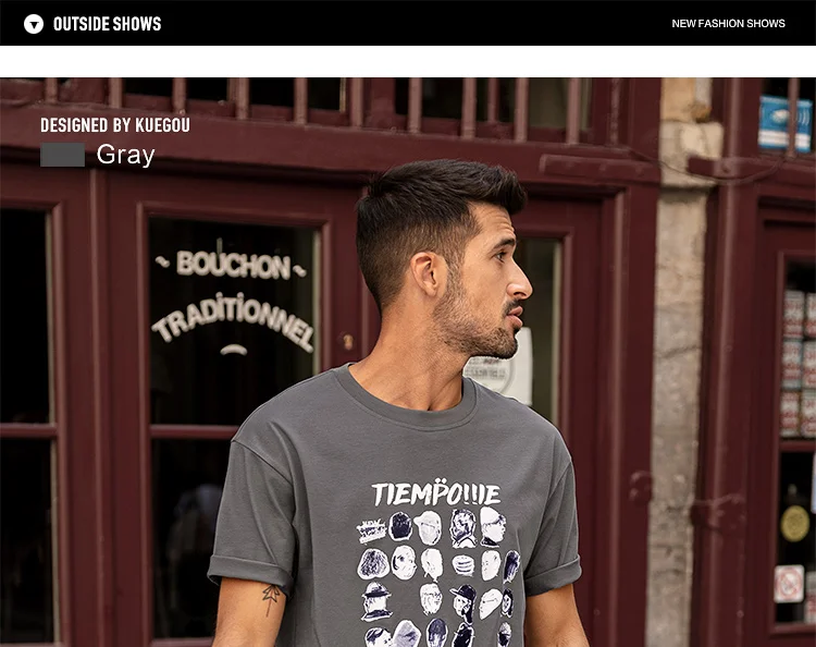 Мужская хлопковая футболка KUEGOU, летняя футболка с коротким рукав...