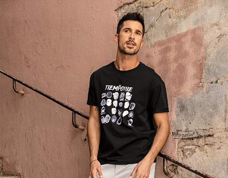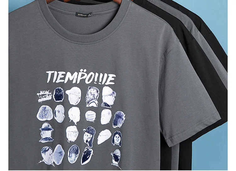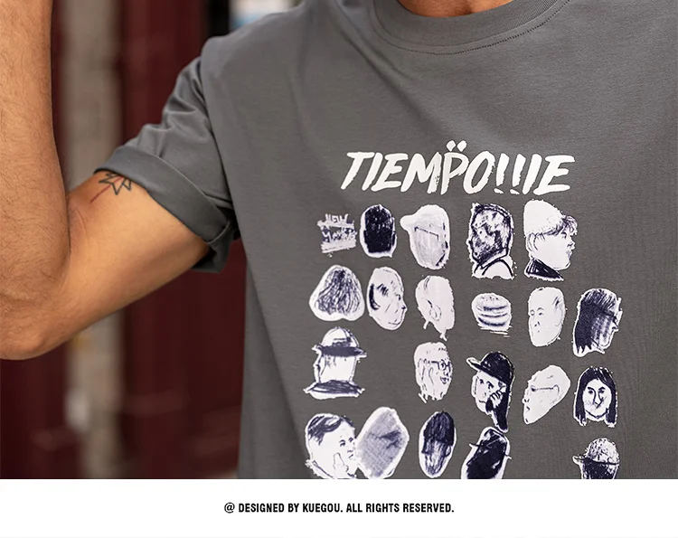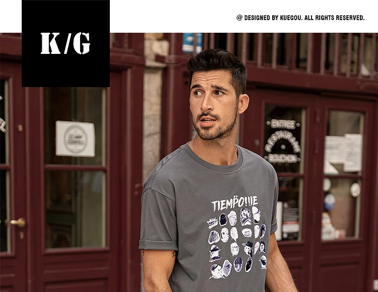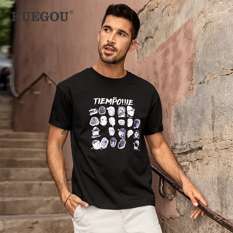 Футболка KUEGOU мужская с принтом, тенниска из 100% хлопка с коротк...