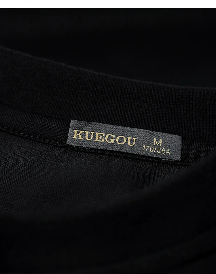 Мужская футболка с длинным рукавом KUEGOU, черная Винтажная футболк...