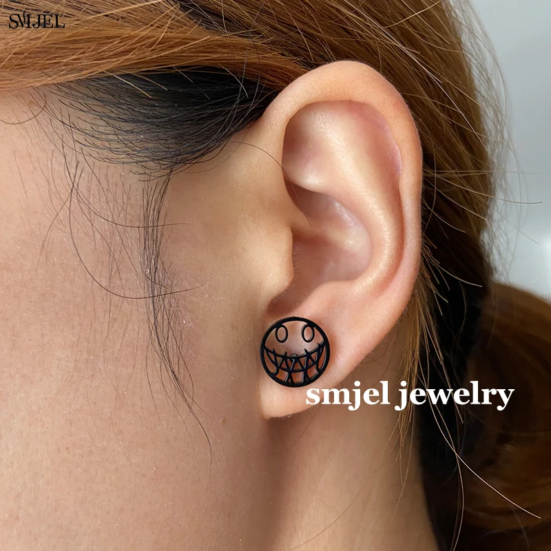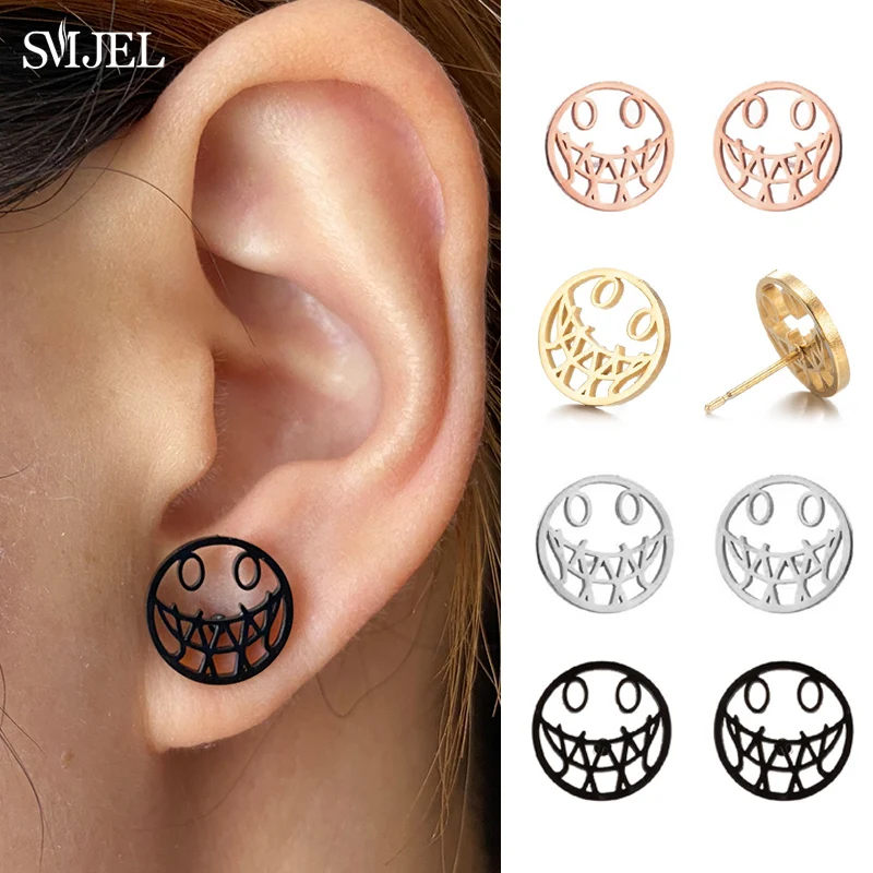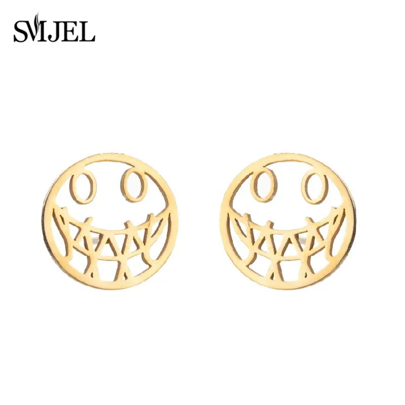 Модные забавные серьги-смайлики для мужчин и женщин 2021 уличные серьги из нержавеющей стали со смайликом, женские Украшения, подарок на Хэллоуин