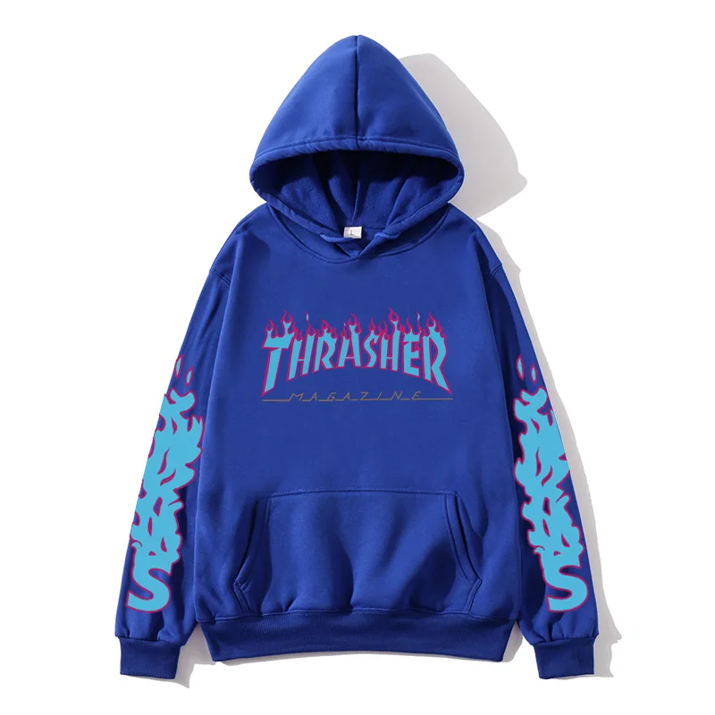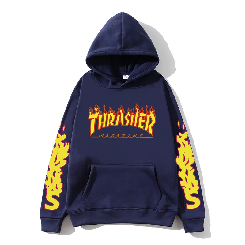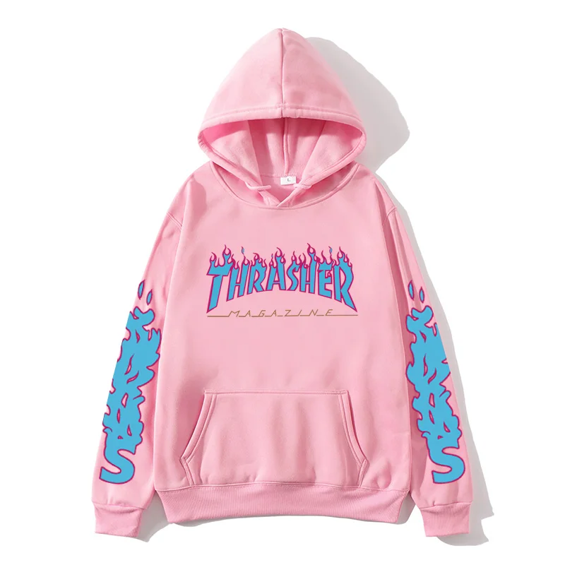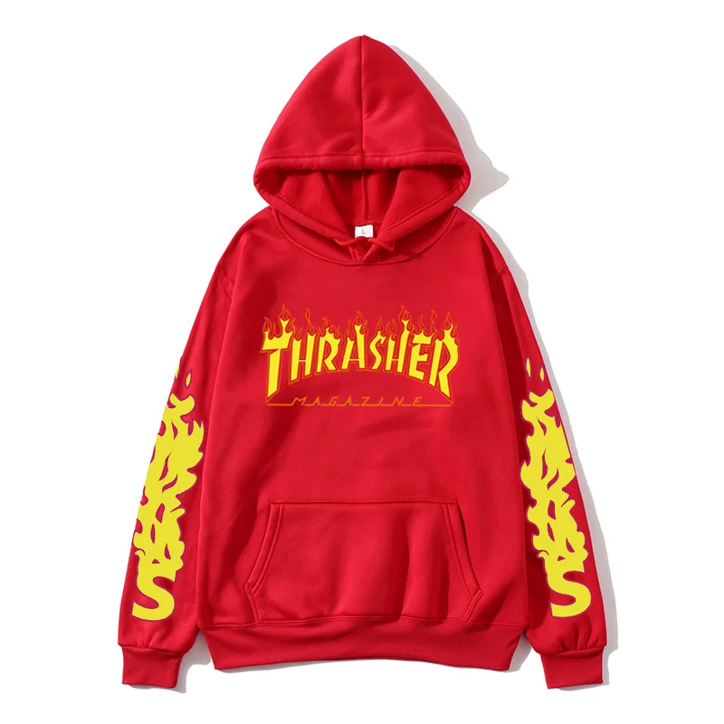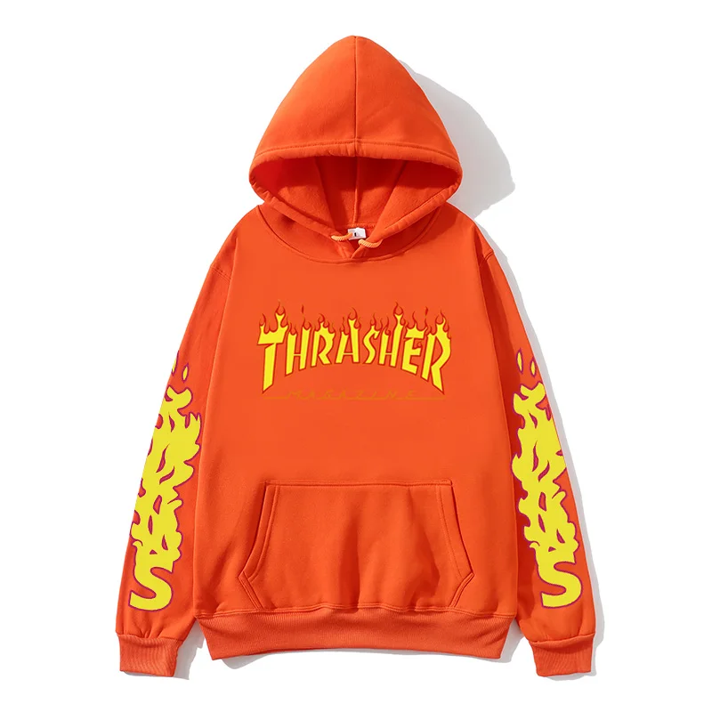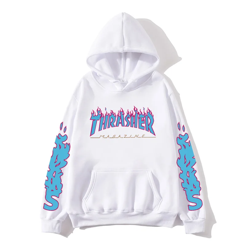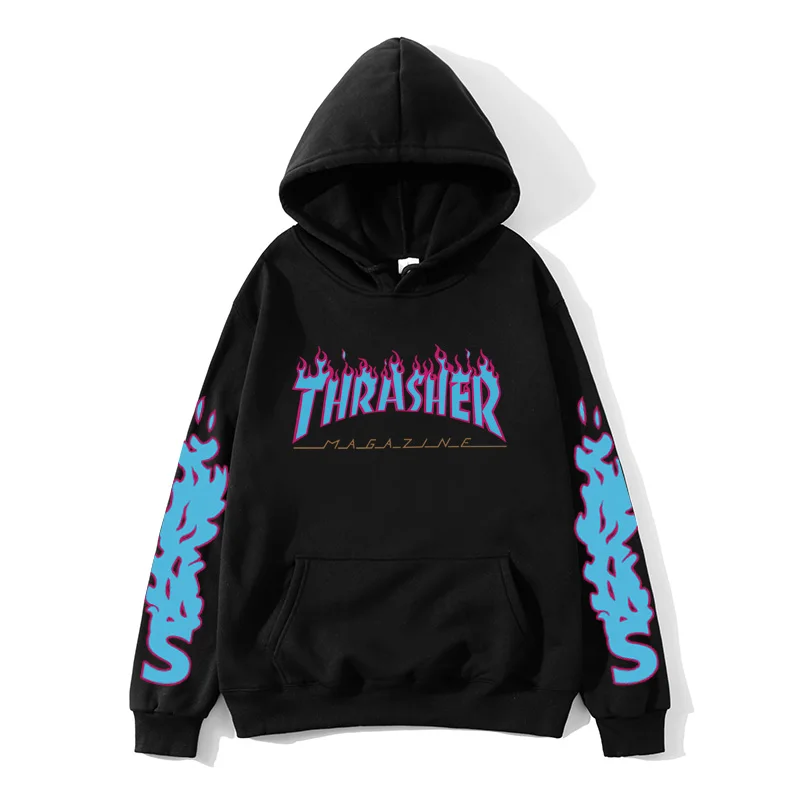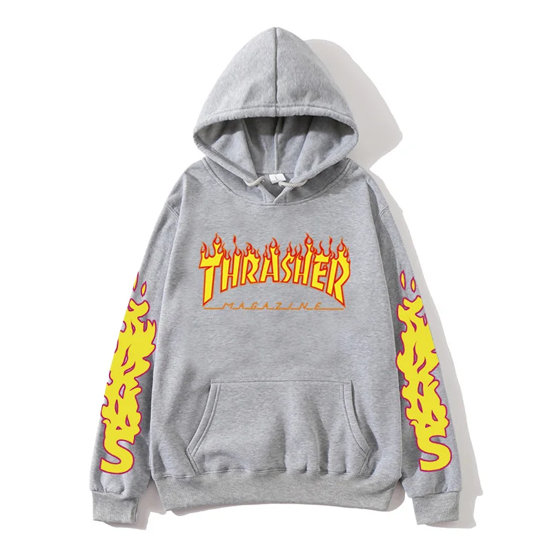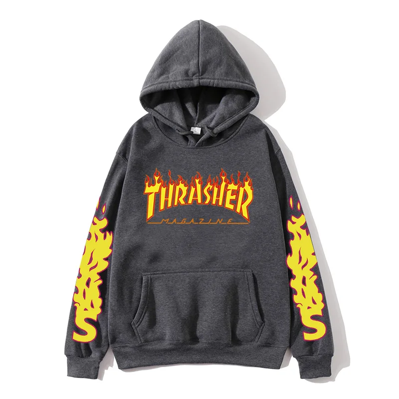 Новинка, осенняя Теплая мужская толстовка с капюшоном и принтом трашеры, мужская Толстовка Оверсайз в стиле Харадзюку, уличный модный мужской пуловер в стиле панк