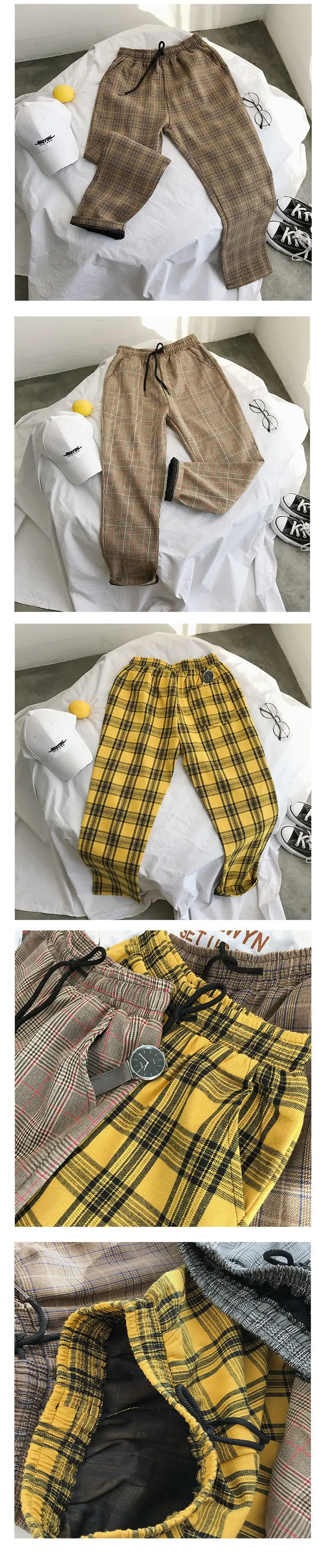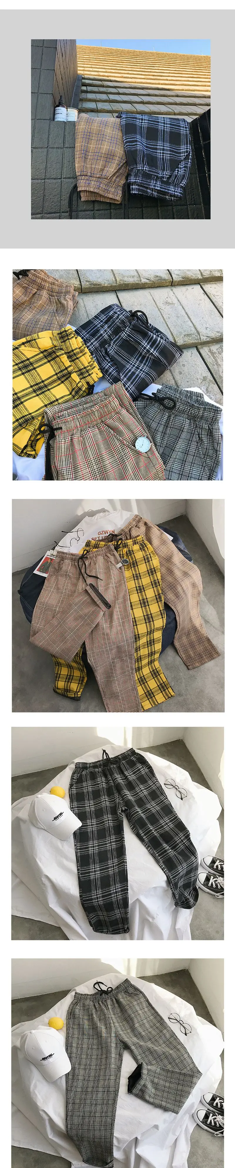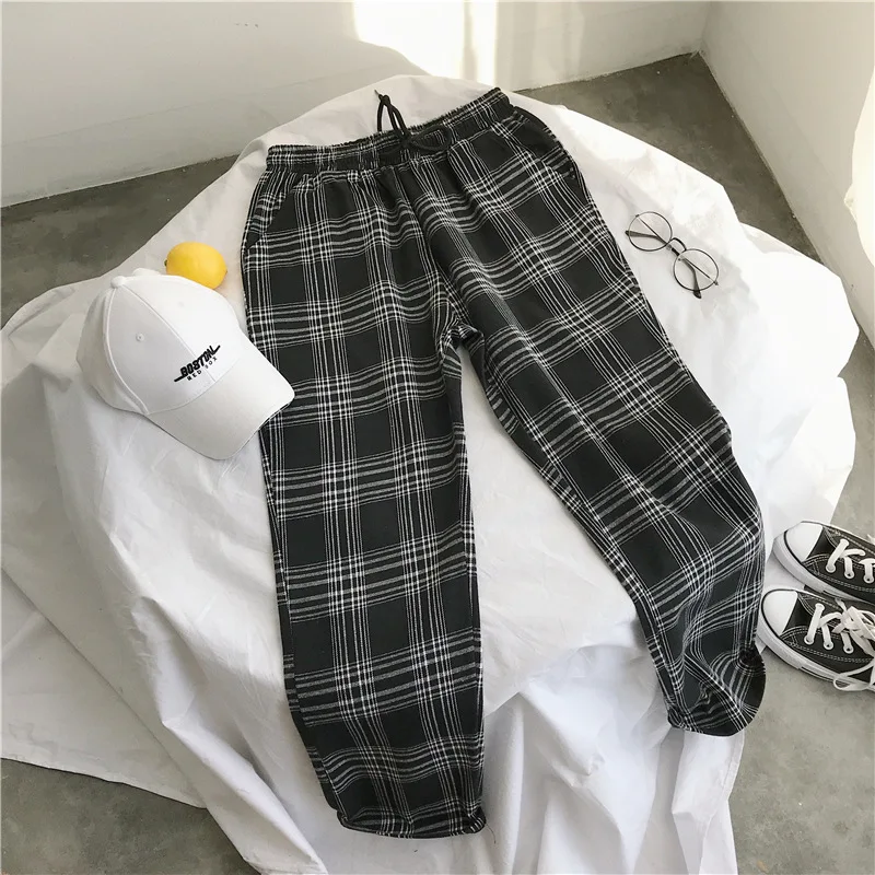 Мужские повседневные брюки в клетку, черные свободные брюки в клетку, с широкими штанинами, в Корейском стиле, весна-осень 2021