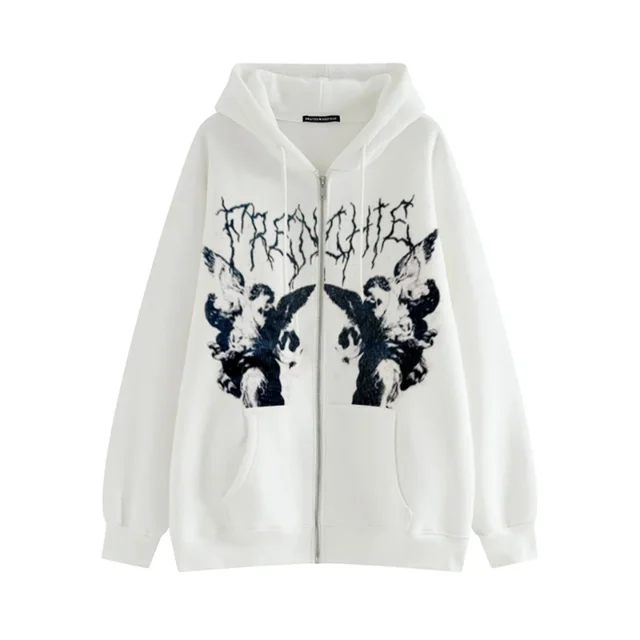 Толстовка МужскаяЖенская Y2K, с капюшоном на молнии, с принтом анге...