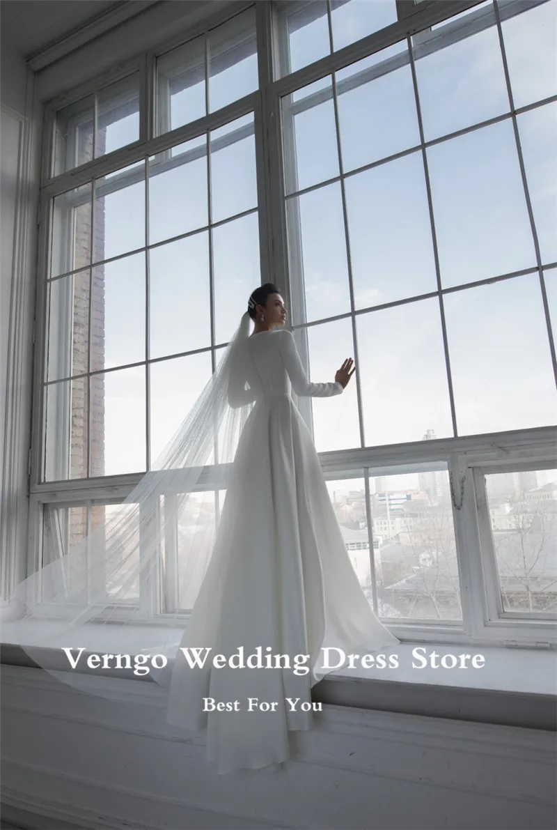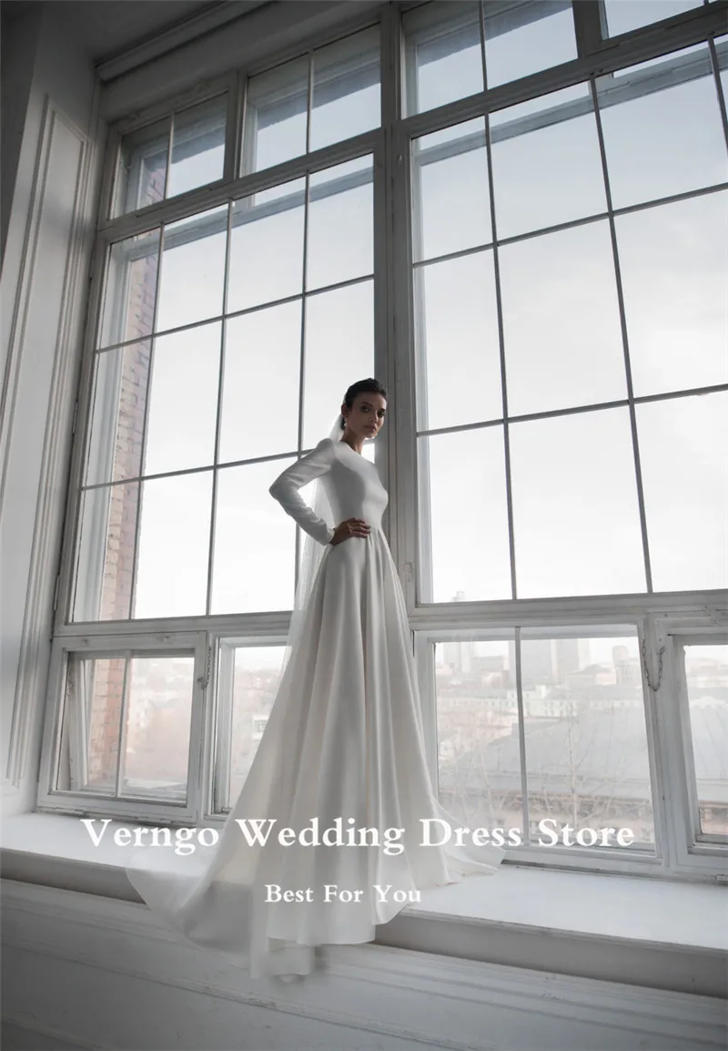 Простое шелковое тонкое атласное свадебное платье Verngo трапециевидного силуэта, Длинные пижамы, сдержанное арабское платье невесты Дубая, 2021, женские вечерние платья