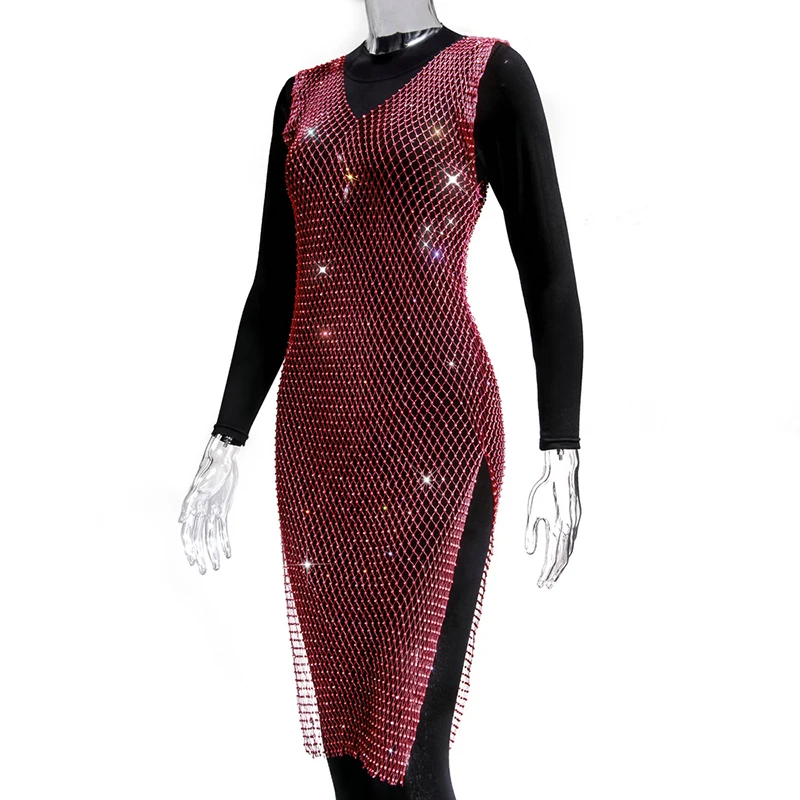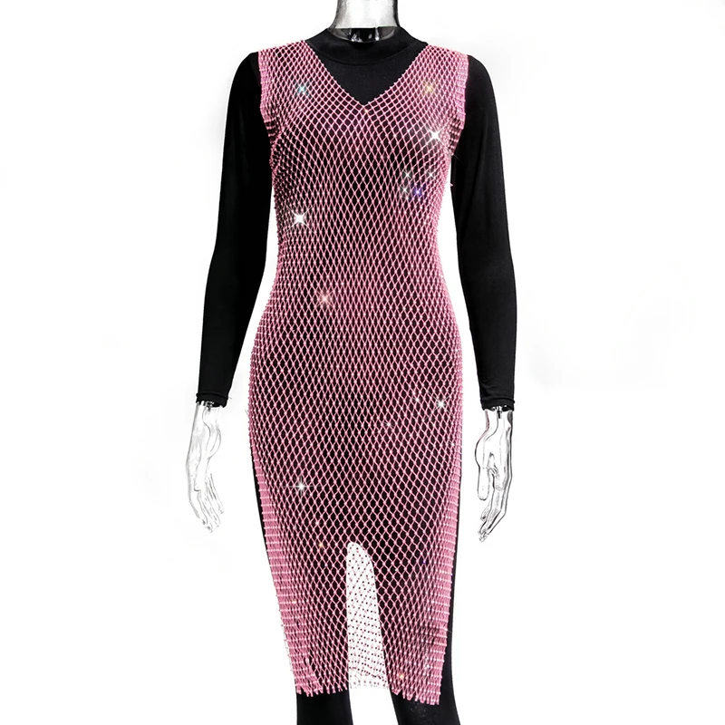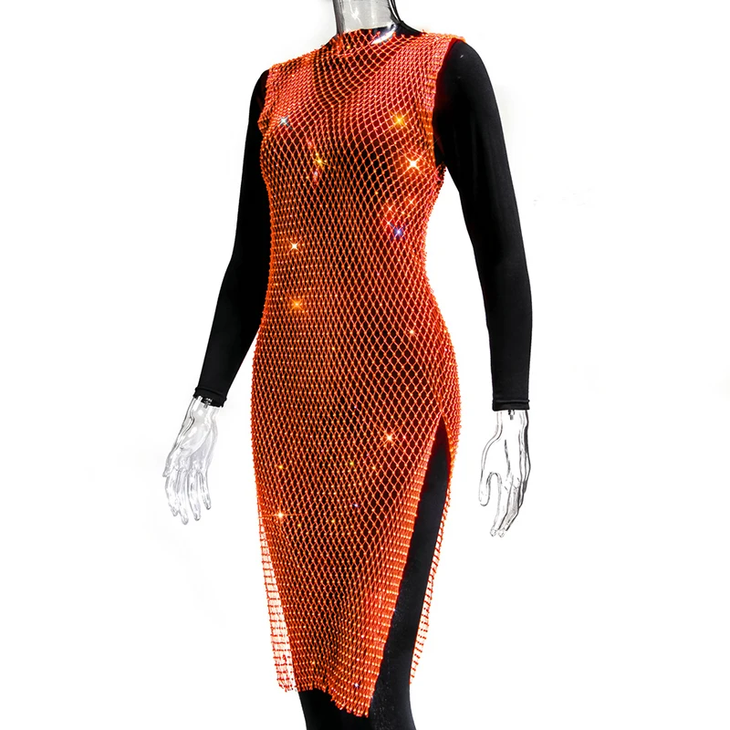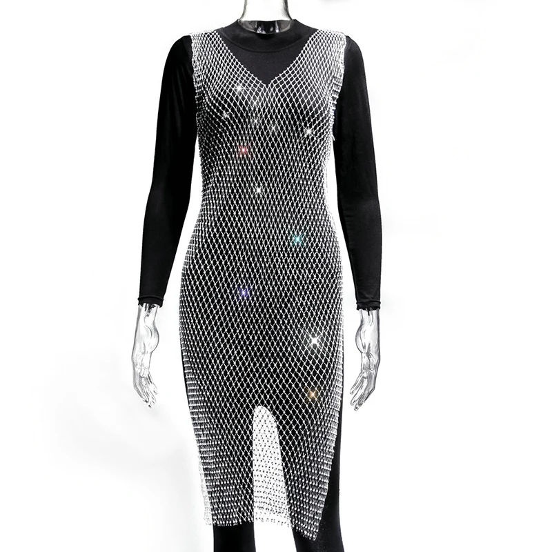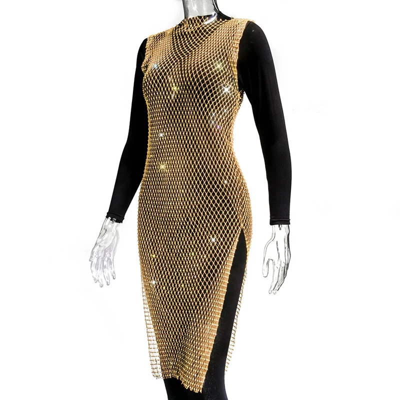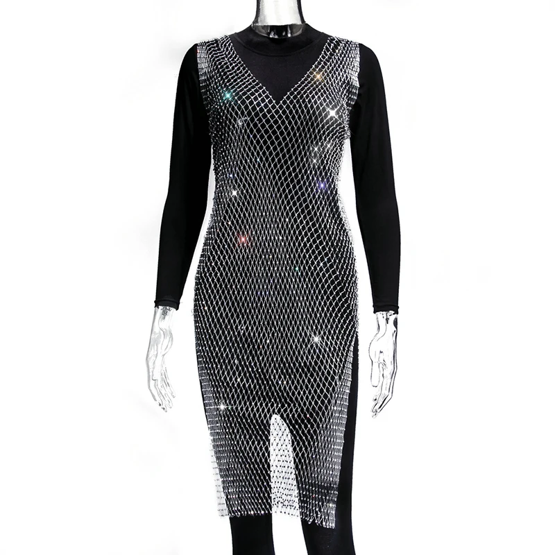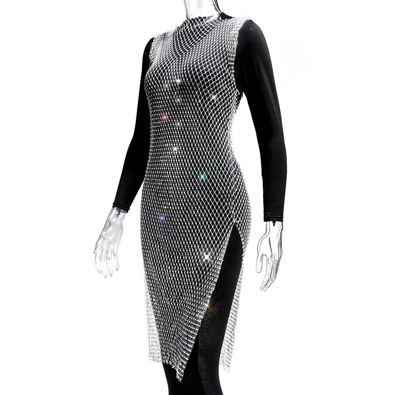 Женское блестящее мини-платье, без рукавов, с вырезами и кристаллами, прозрачное, в сетку