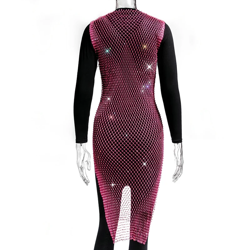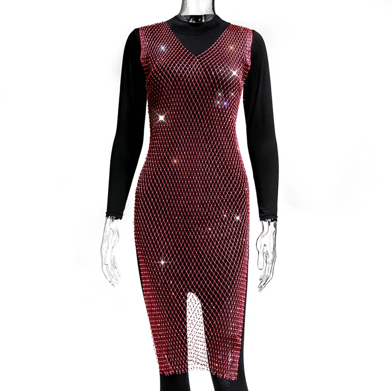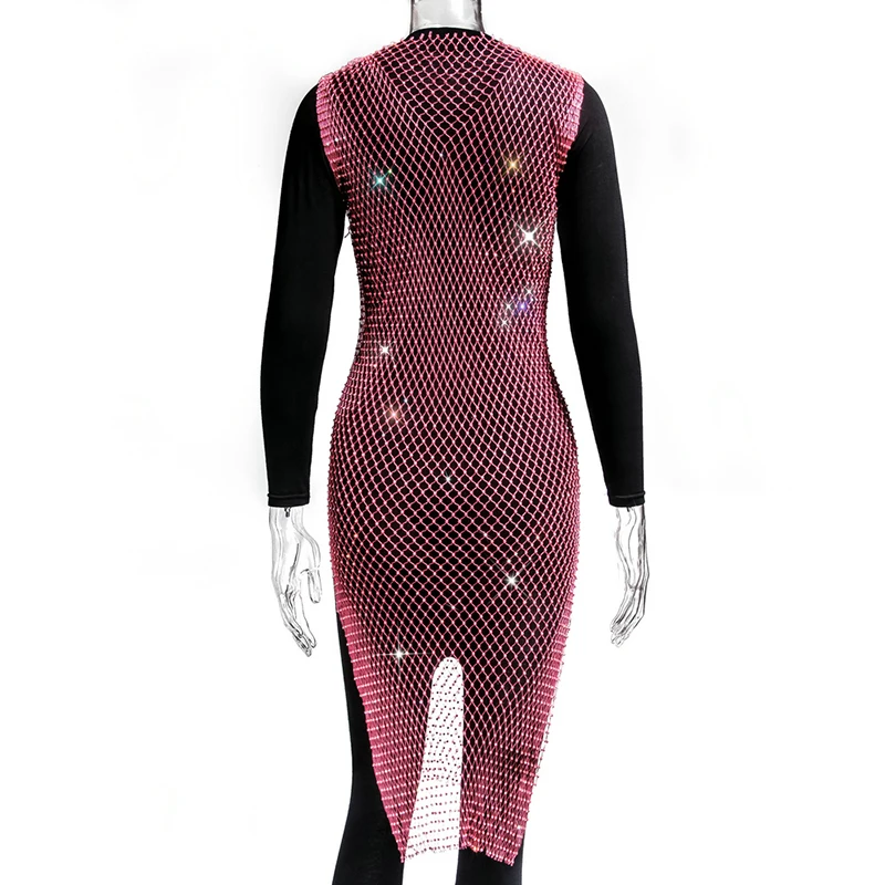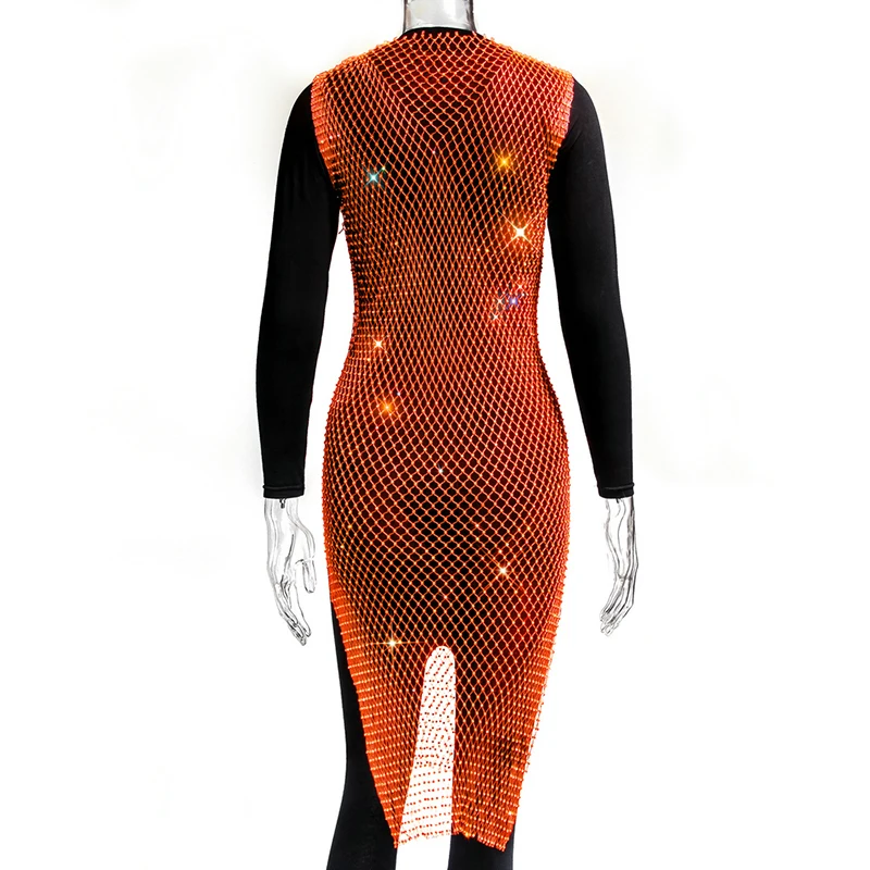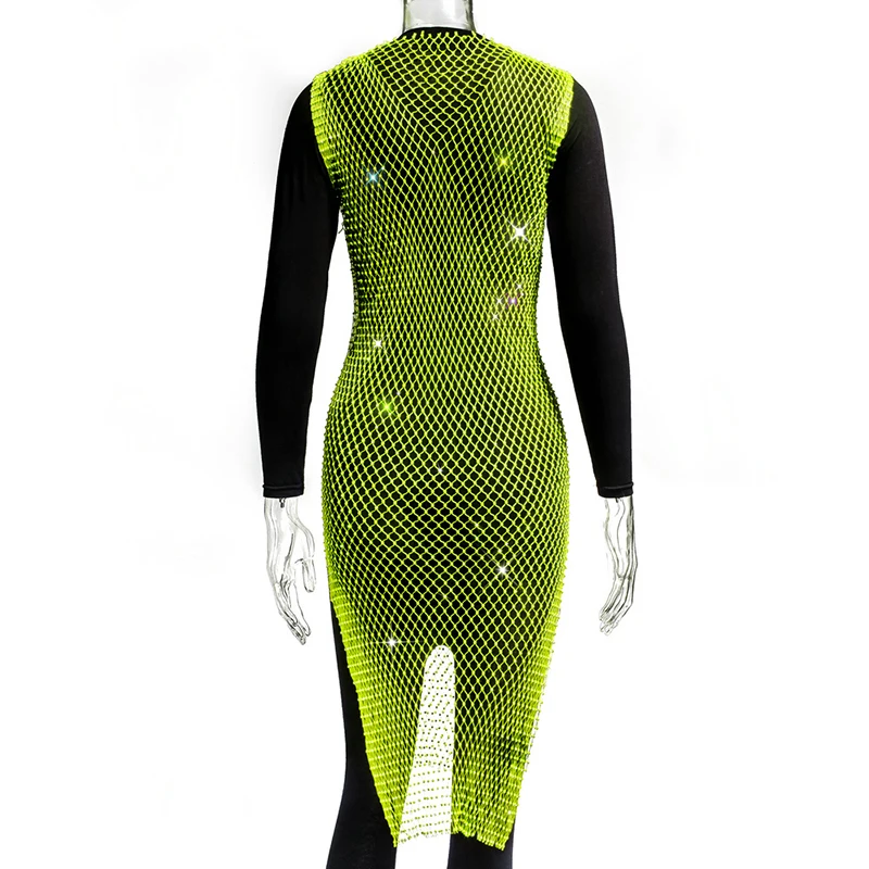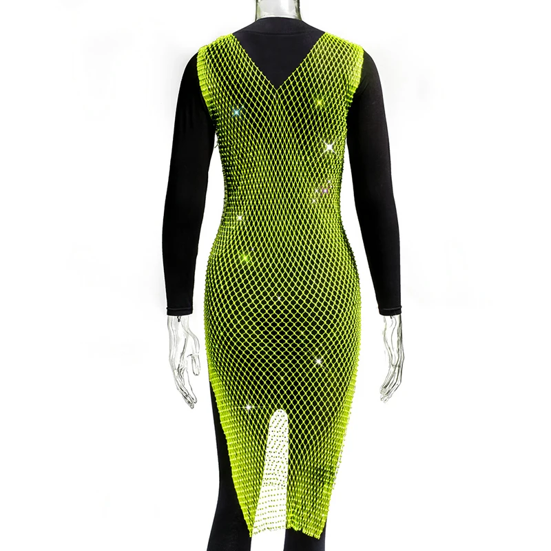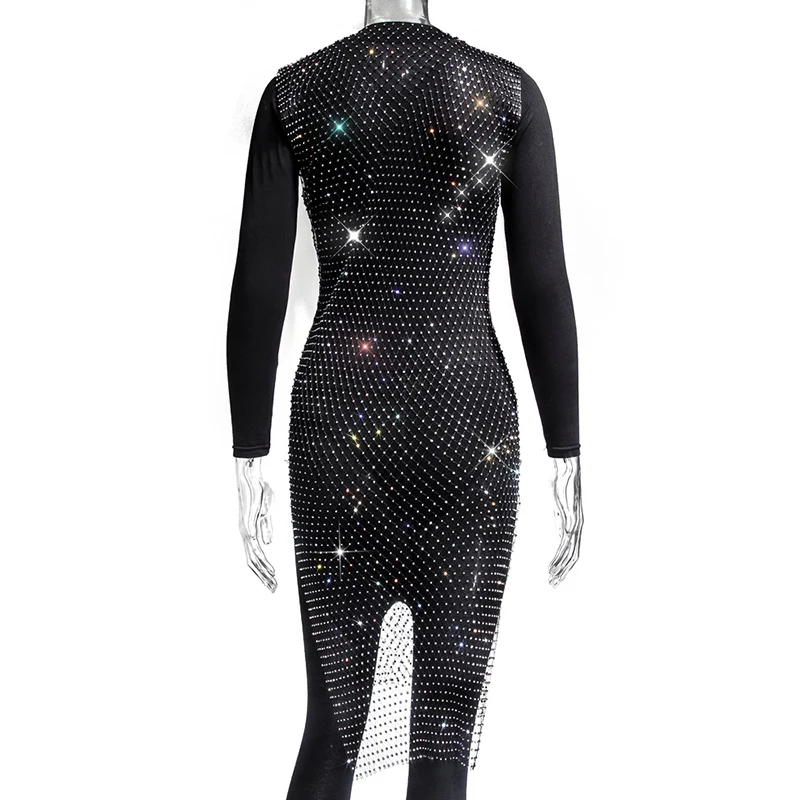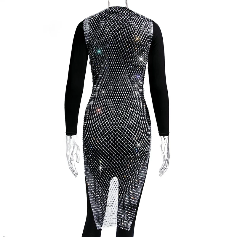 Женское блестящее мини-платье, без рукавов, с вырезами и кристаллами, прозрачное, в сетку