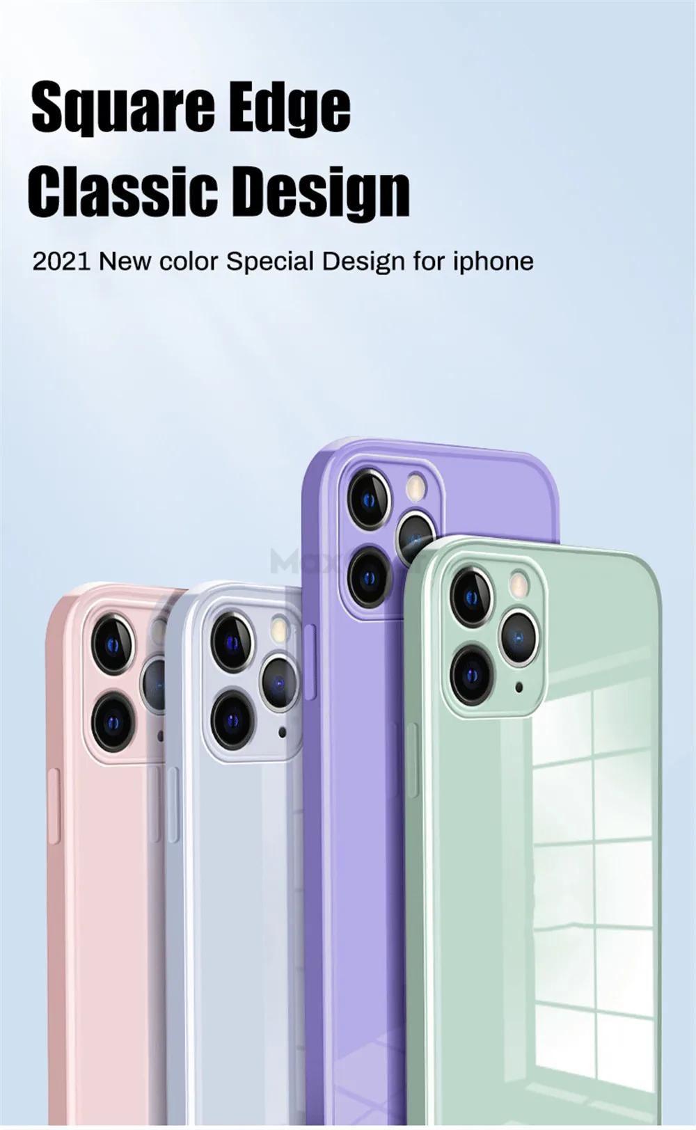 Оригинальный квадратный чехол из жидкого силикона и закаленного сте...