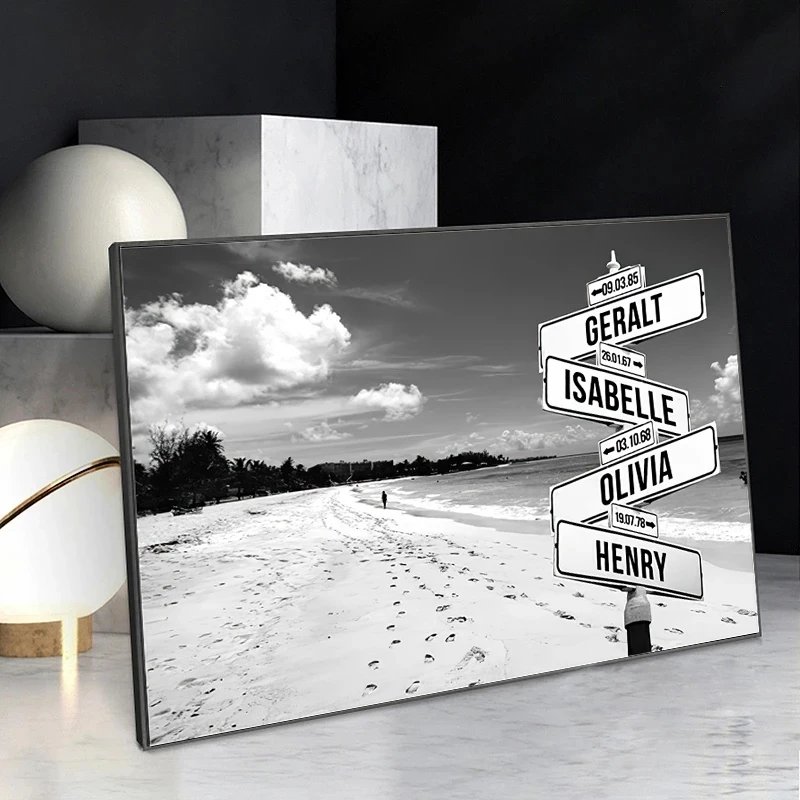 Создайте прочные воспоминания с этим семейным уличным знаком, выполненным на заказ парусиновым принтом-черным и белым небом. Вы можете подарить его своим друзьям, членам семьи или любому особому, включая индивидуальные имена и даты.