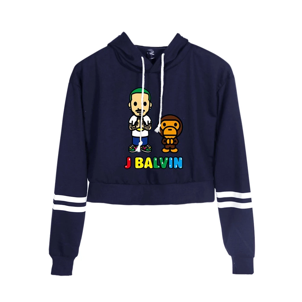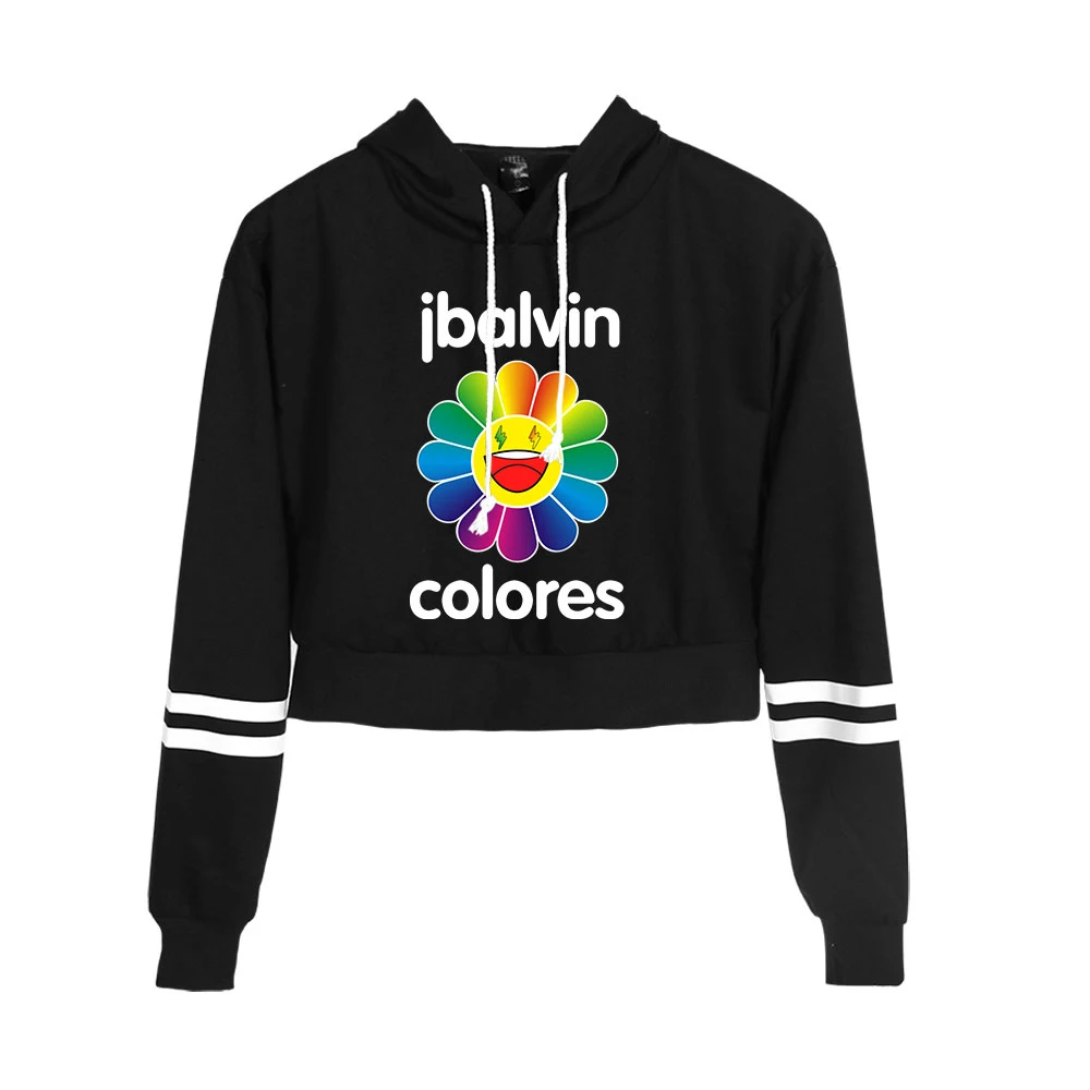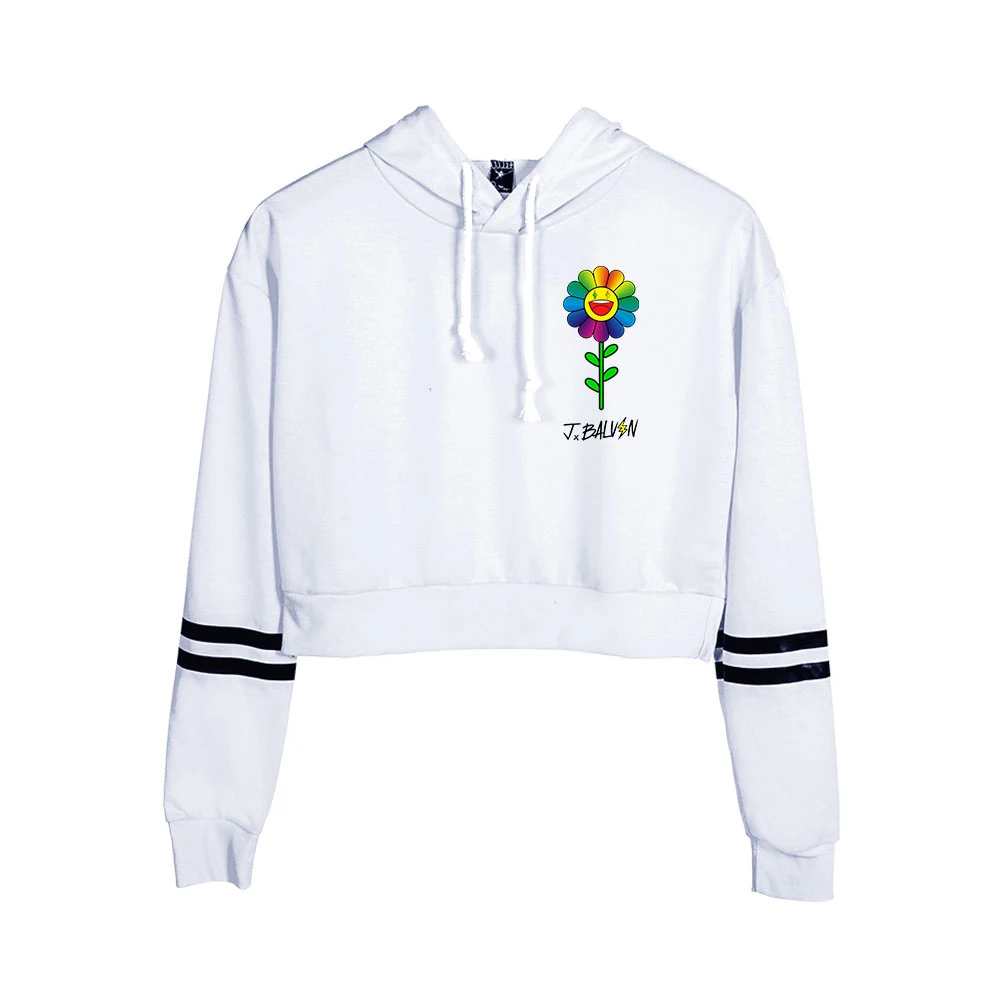 Модная одежда J BALVIN, укороченные толстовки с длинным рукавом, Женский пуловер, укороченный топ, новинка, цвета альбома, одежда с подсолнухами для девочек