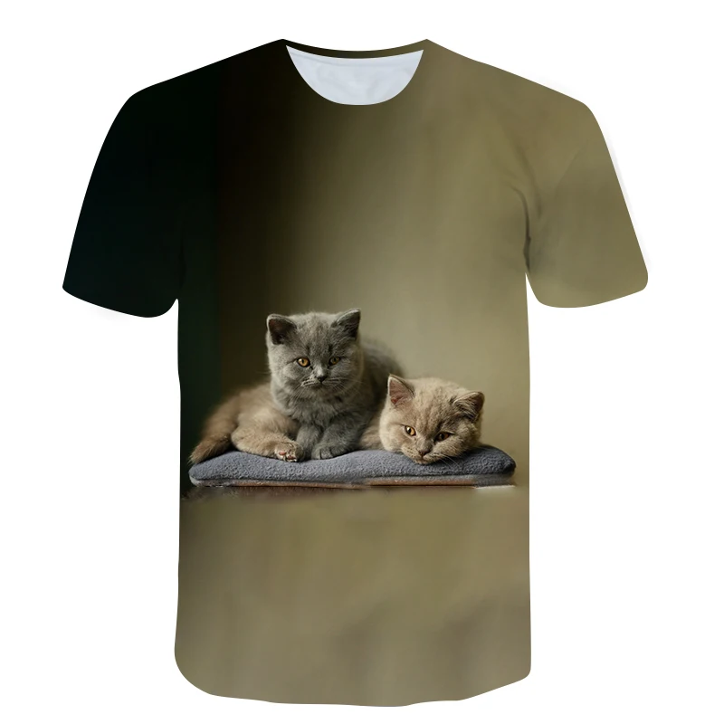 Летняя футболка с коротким рукавом и 3D-принтом милого кота для жен...