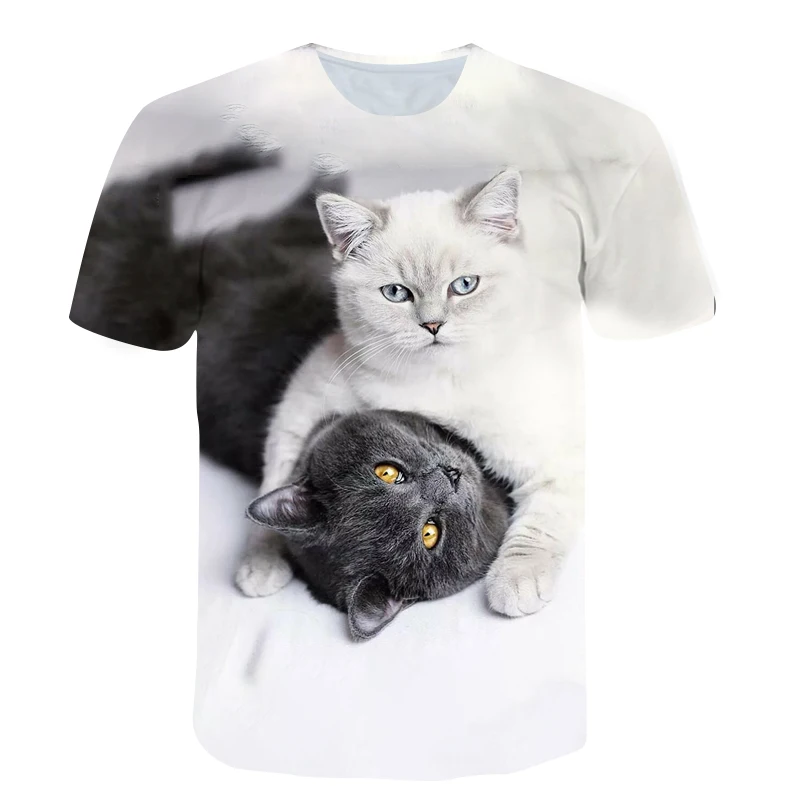 Модная мужская и женская футболка с 3D рисунком двух кошек, Повседн...