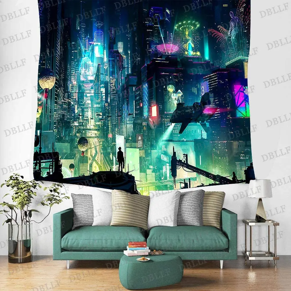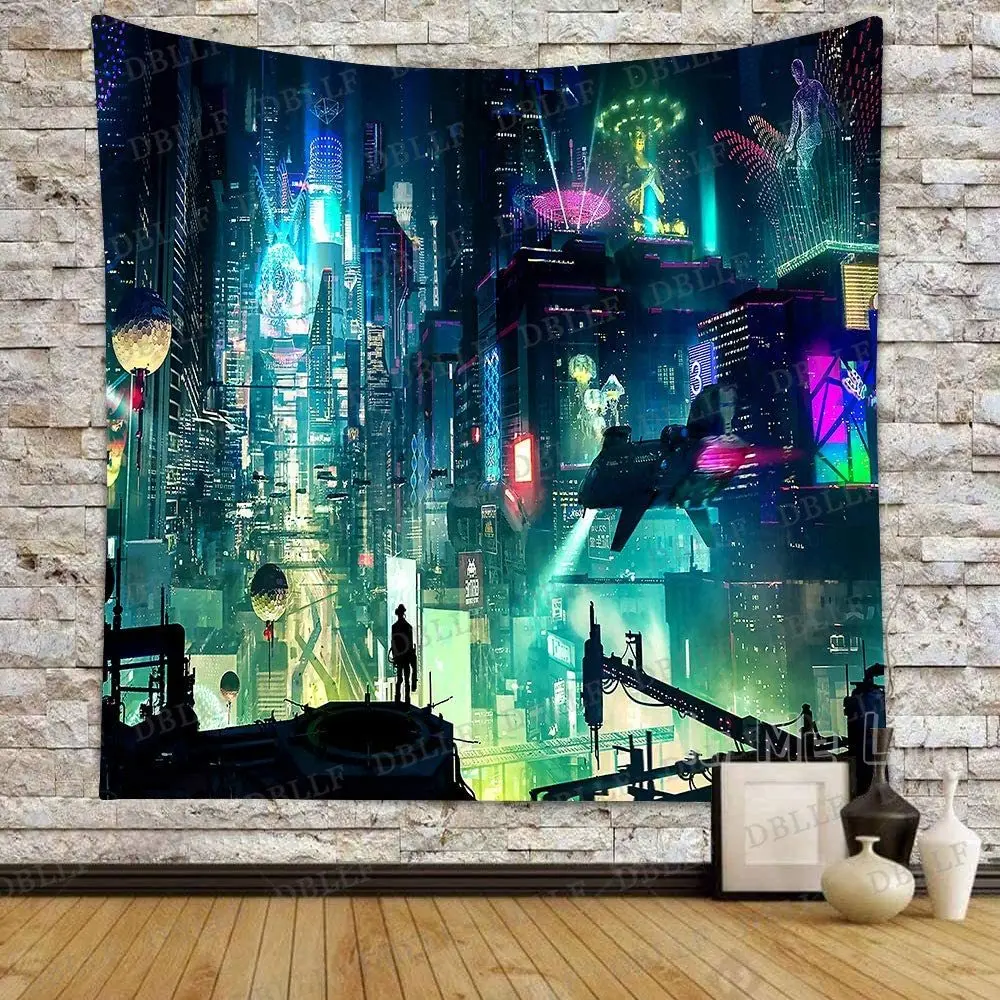 Городской пейзаж гобелен красочный абстрактный дизайн квадратный цифровой искусство фланелевый искусство Средний Токийский ночной фон для домашнего декора