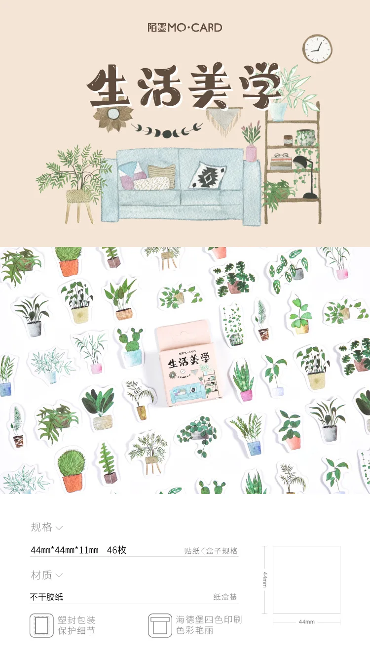Альбом для стикеров в коробке, 46 шт., милые наклейки с растениями ...