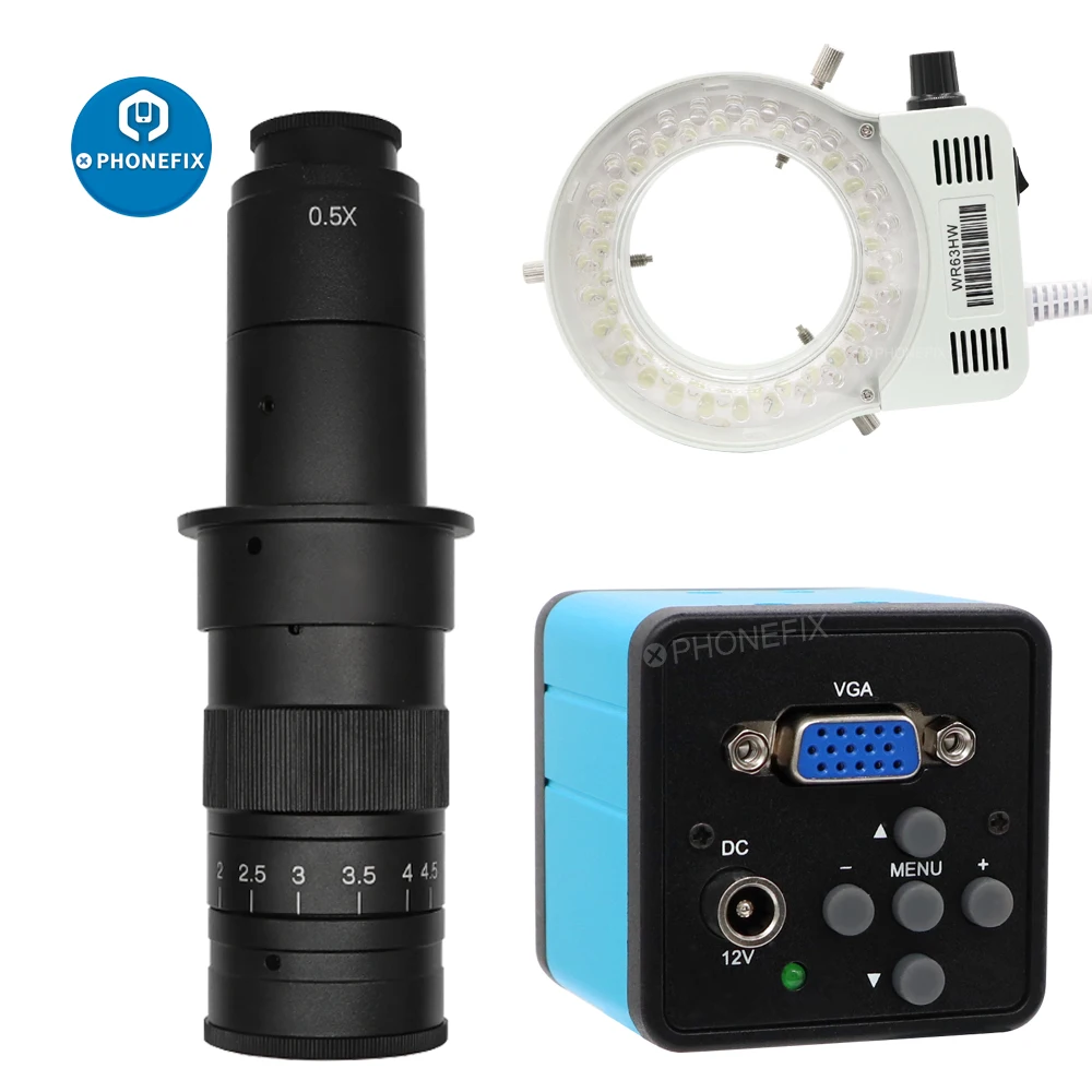 Видеомикроскоп Промышленный Цифровой 1080P HDMI VGA + объектив с регулируемым зумом 130X 2000X 250X + кольцевой светильник с 56 светодиодами