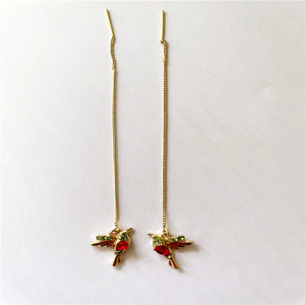 USTAR милые птицы Длинные свисающие серьги для женщин, блестящие ку...