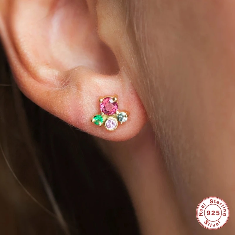 Simple Round Stud EarringsPiercing Zircon Crystals Stud Earrings