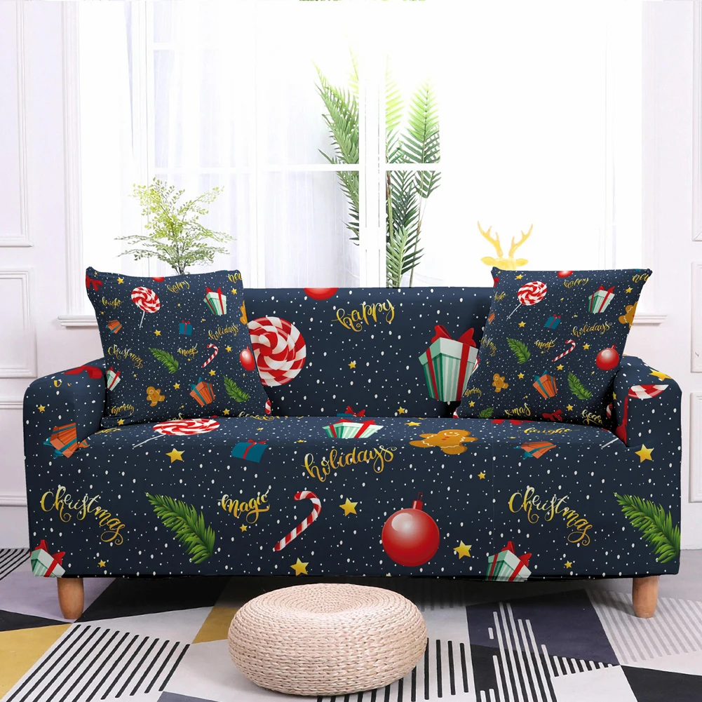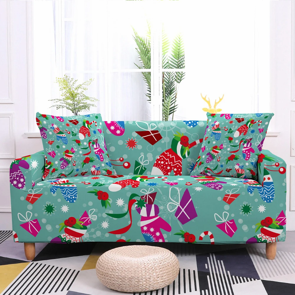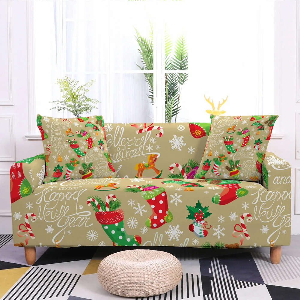 Эластичный чехол для дивана, Рождественский эластичный чехол для углового секционного дивана, L-образный диван с принтом Санта-Клауса