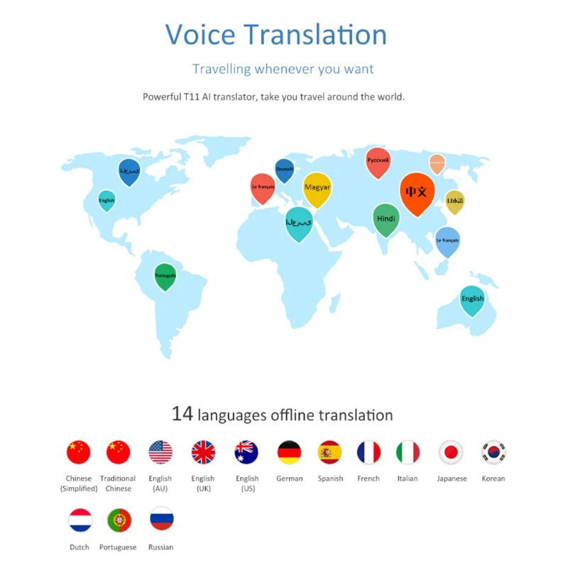 T11-переводчик, вокальный Интеллектуальный портативный, 138 языков,...