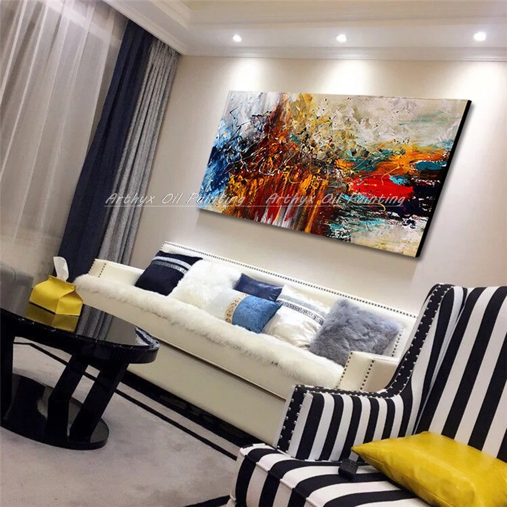 Абстрактная масляная живопись Arthyx большого размера на холсте ручной работы, Современная плотная текстура, Настенная картина для гостиной, украшение для дома