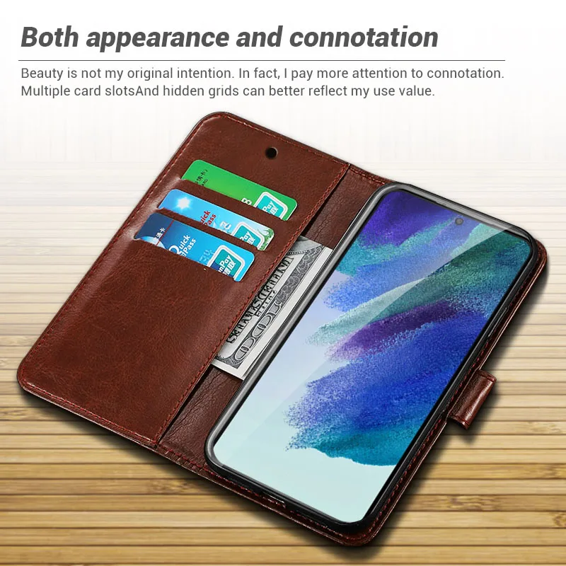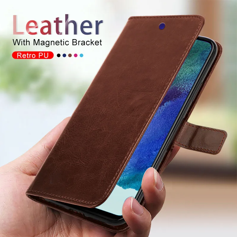 [Размер]: Идеально подходит для samsung galaxy s21 fe 6,41 дюйма [Материал]: изготовлен из высококачественной искусственной кожи Crazy Horse[Цвет]: черный светильник Ый, синий, красный, розово-красный, коричневый, синий, как показано на рисунке.[Стиль]: 2021 Новый винтажный Модный, крутой, роскошный, Практичный чехол Capa Funda Coque.[Особенность]: ультратонкая задняя крышка сотового телефона ручной работы в стиле ретро, многоцветная, ультратонкая.[Функция]: задняя защитная противоскользящая, ударопрочная, грязеотталкивающая, устойчивая к падению.