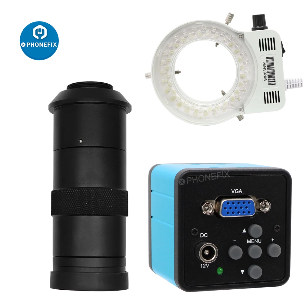 Набор HDMI микроскоп камера VGA 30fps USB промышленная микроскопическая камера + 130X Регулируемый зум C крепление объектива 56 светодиодная кольцесветильник лампа