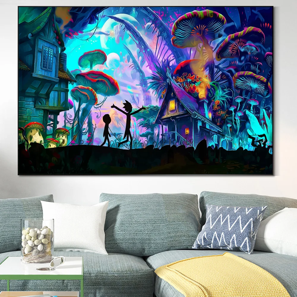 Morty Run с ученым Рик мультфильм ТВ серия плакат и принты домашний декор холст живопись на стену искусство роспись картины