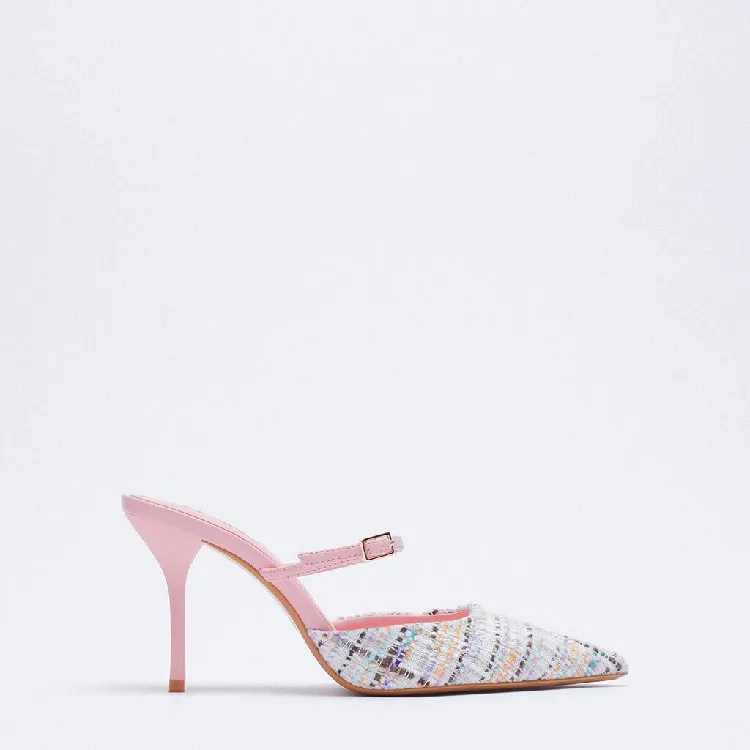 Женские туфли с острым носком ZA, твидовые туфли на высоком тонком каблуке, туфли Muller, лето-осень 2021