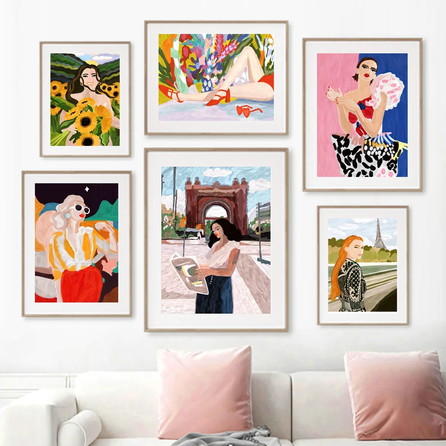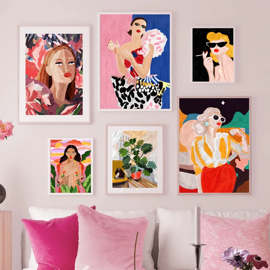 Модная девушка волк монстера акварель абстрактная стена искусство холст живопись плакаты и принты стены картины для гостиной Декор