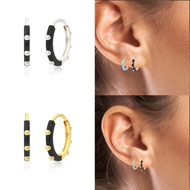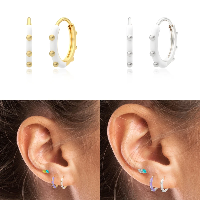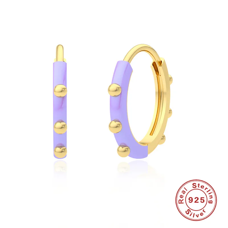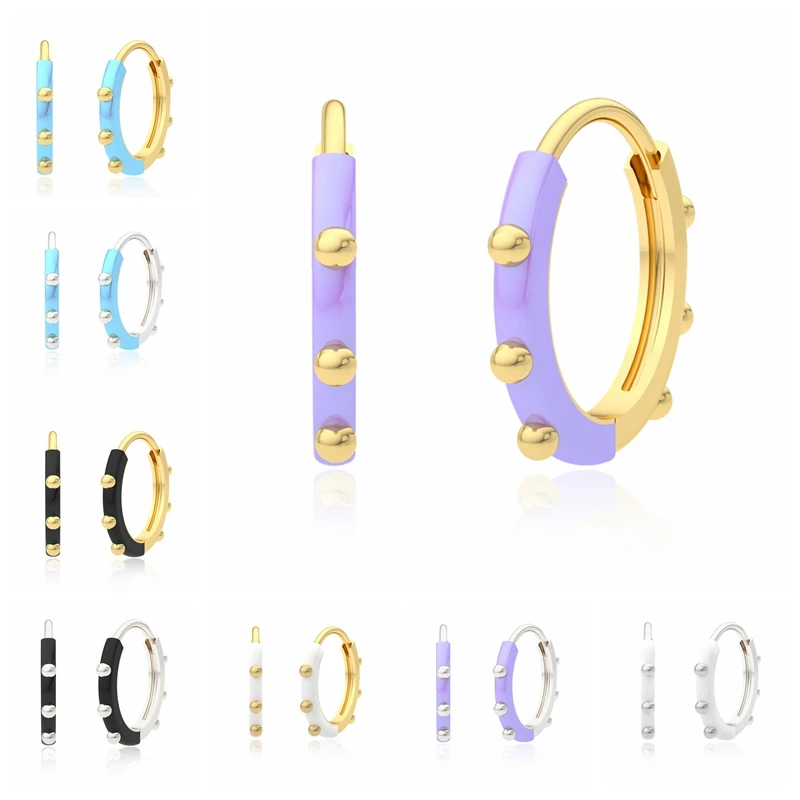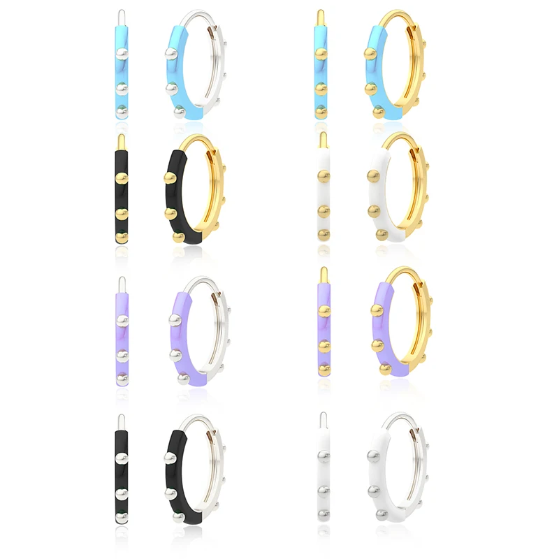Серьги-кольца женские с разноцветными эмалированными заклепками, из...