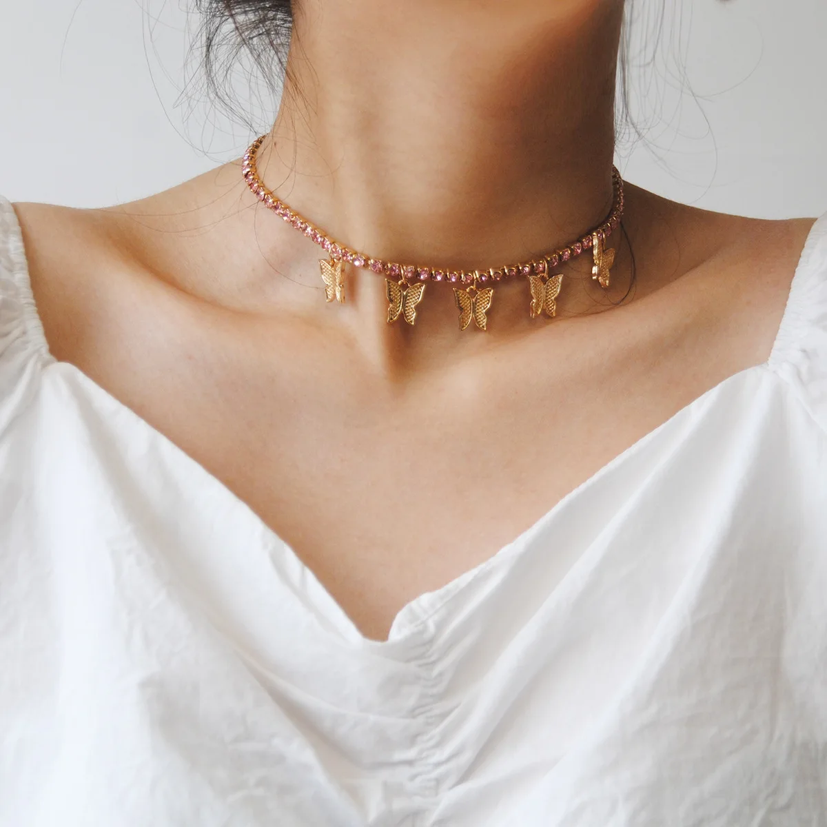 Цепочка-чокер Женская металлическая, с подвеской в виде бабочки, Сияющий Модный