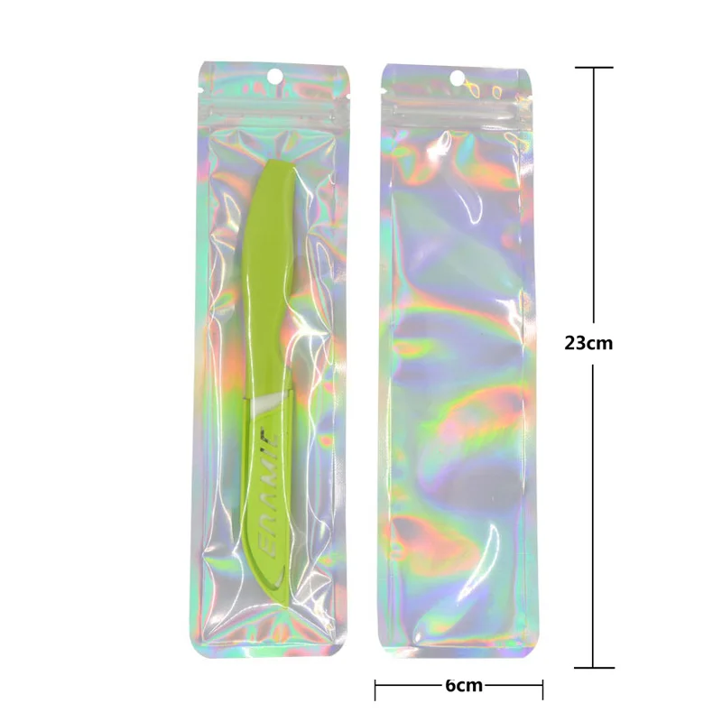 100 шт., длинные голографические пакеты с застежкой-молнией, Прозра...