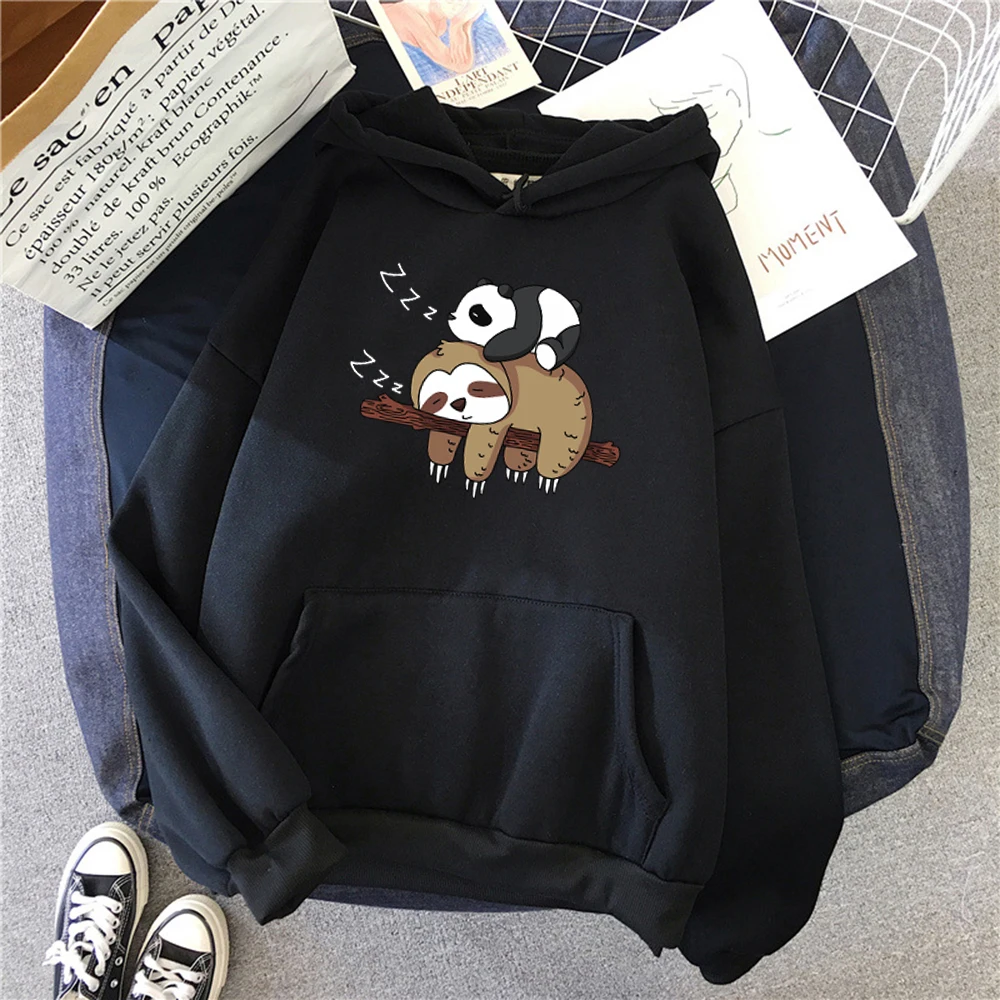 Мужская толстовка с принтом спящего ленивого и панды, свободная флисовая толстовка с карманом, уличная Мужская винтажная толстовка с мультипликационным принтом в стиле панк, аниме, толстовки