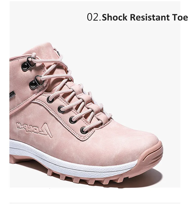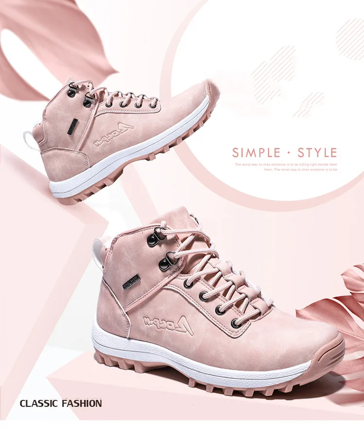 Женские уличные ботинки из ПУ кожи, розовые водонепроницаемые ботил...