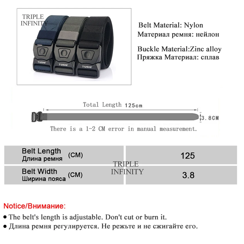 Ремень мужской Тактический с тройной бесконечностью, жесткий нейлоновый ремень с защитой от ржавчины, из цинкового сплава, с подсоединяемой пряжкой, в стиле милитари, для джинсов, спортивные аксессуары